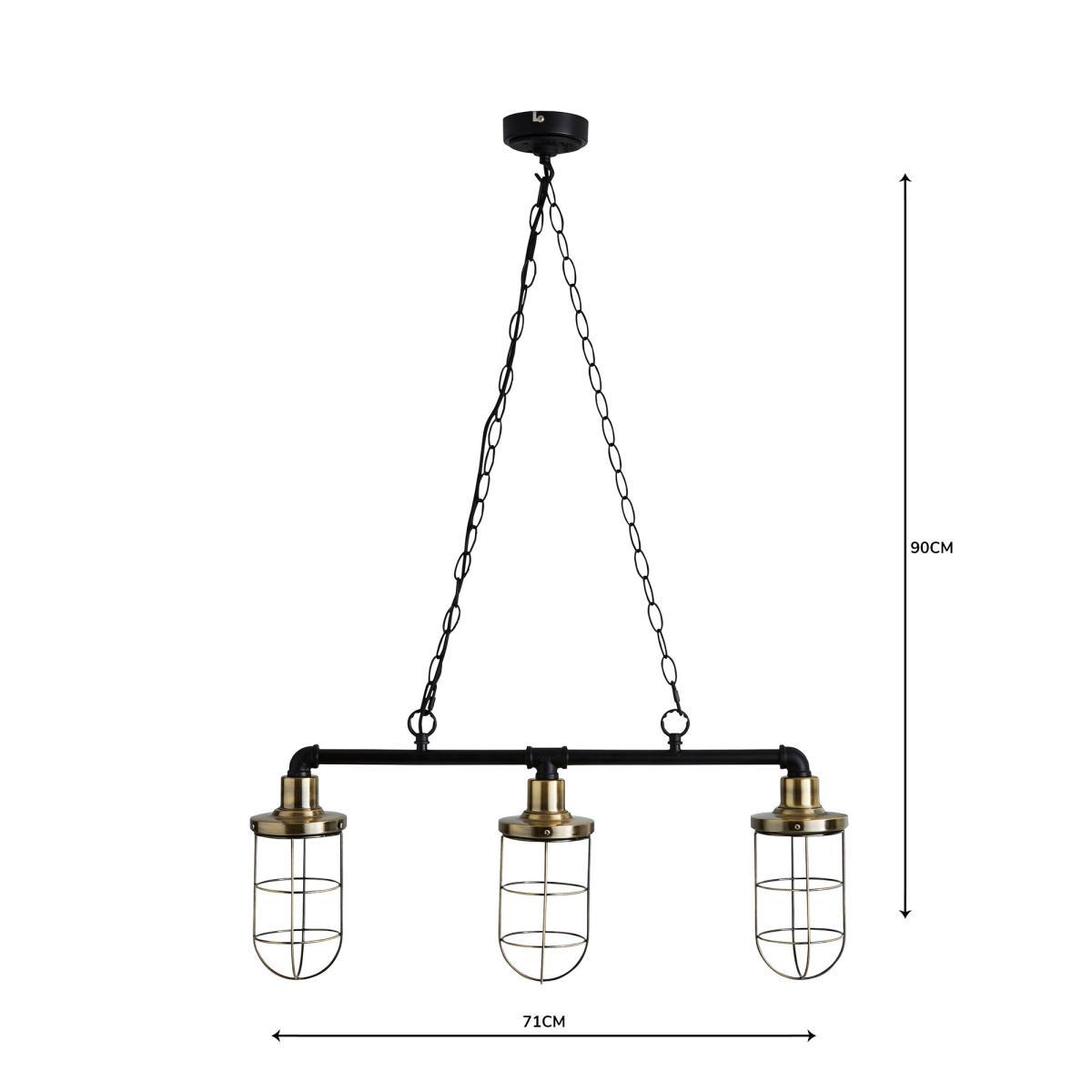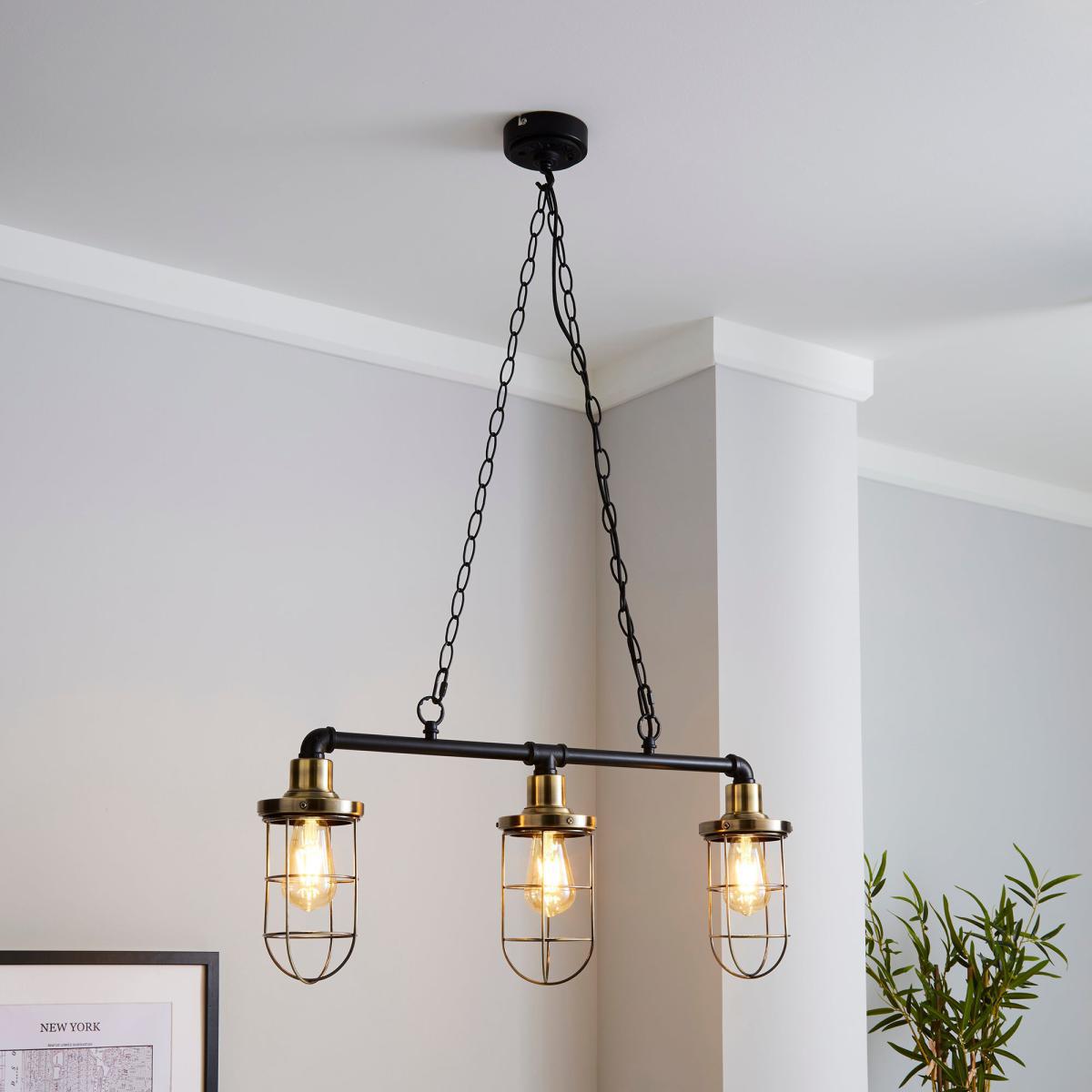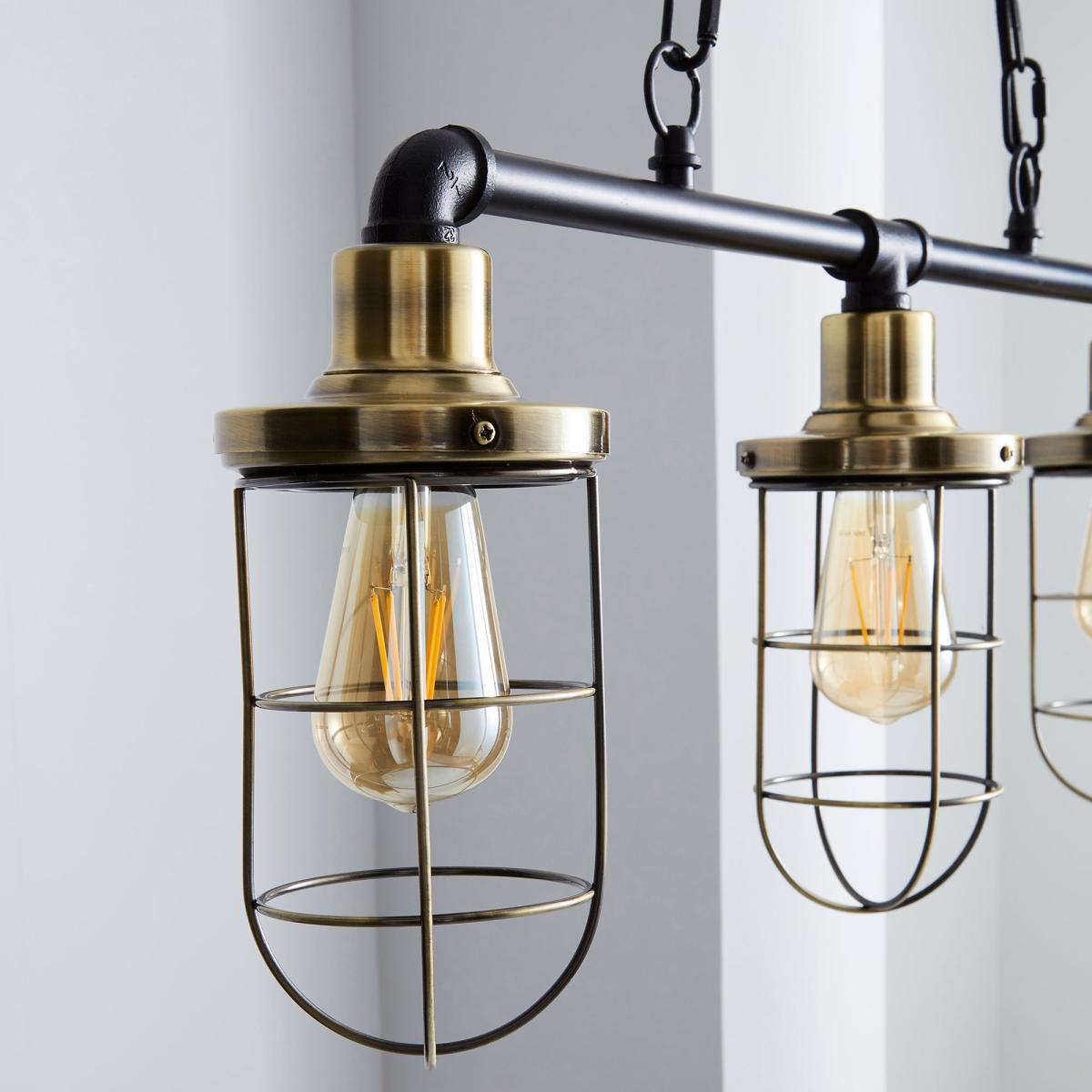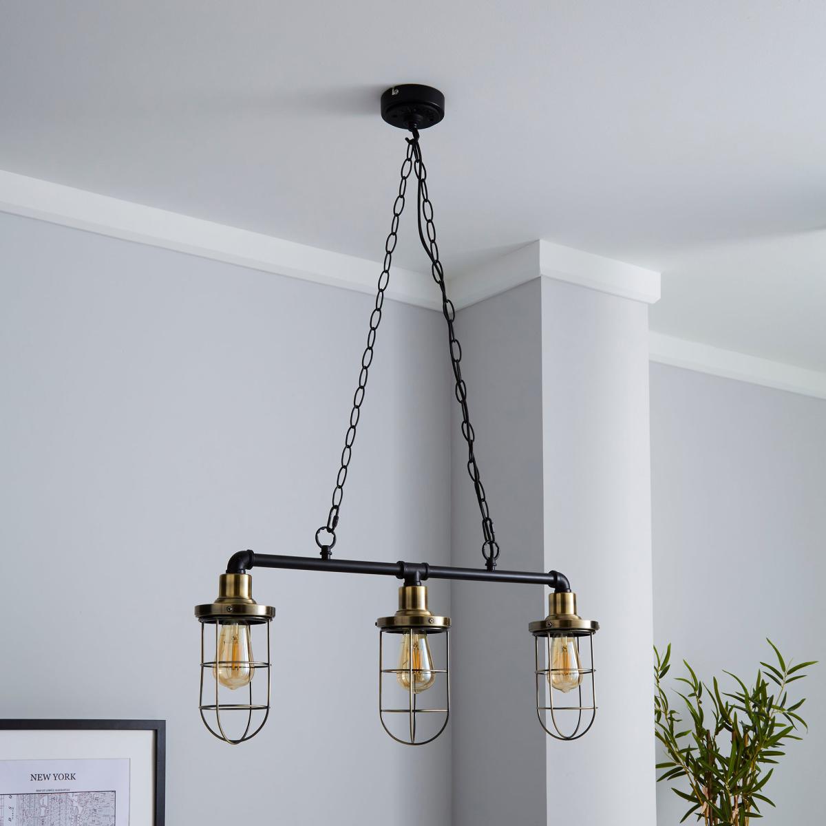Add an industrial inspired touch to your home with this pipe design ceiling light. It features an antique brass shade and open bulb effect. This fitting requires 3 bulbs and is compatable with a dimmer switch and bulb, the recommended LED bulb is 4. W. This light comes with a 2 year guarantee. Click. Here. To view our Terms & Conditions. The UK’s Waste Electrical and Electronic Equipment (WEEE) regulations will allow members of the public to deposit old electrical and electronic items at recycling sites across the UK free of charge. For more information on WEEE and your nearest centre please click. Here. For more information.