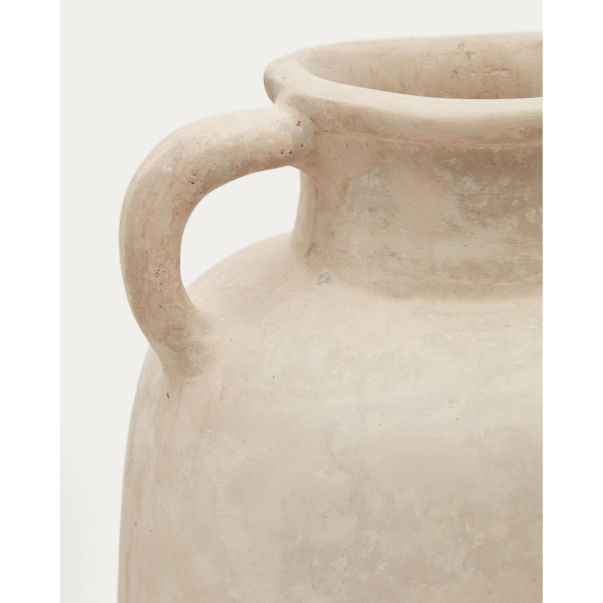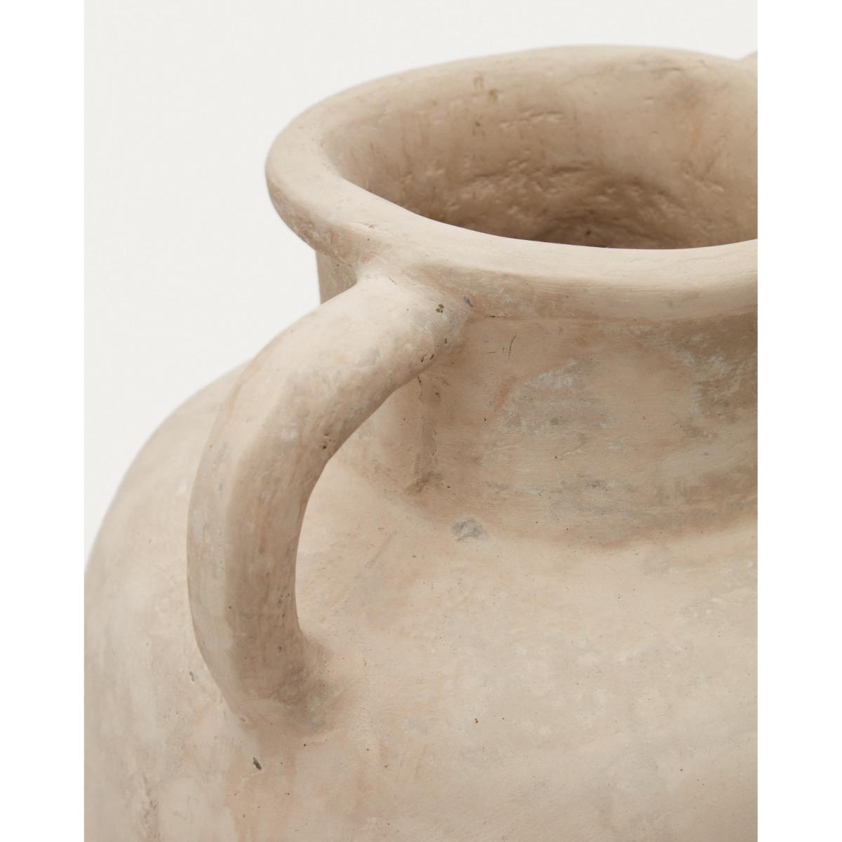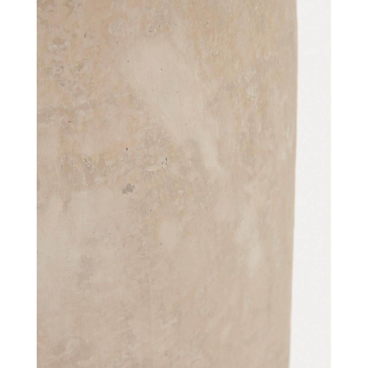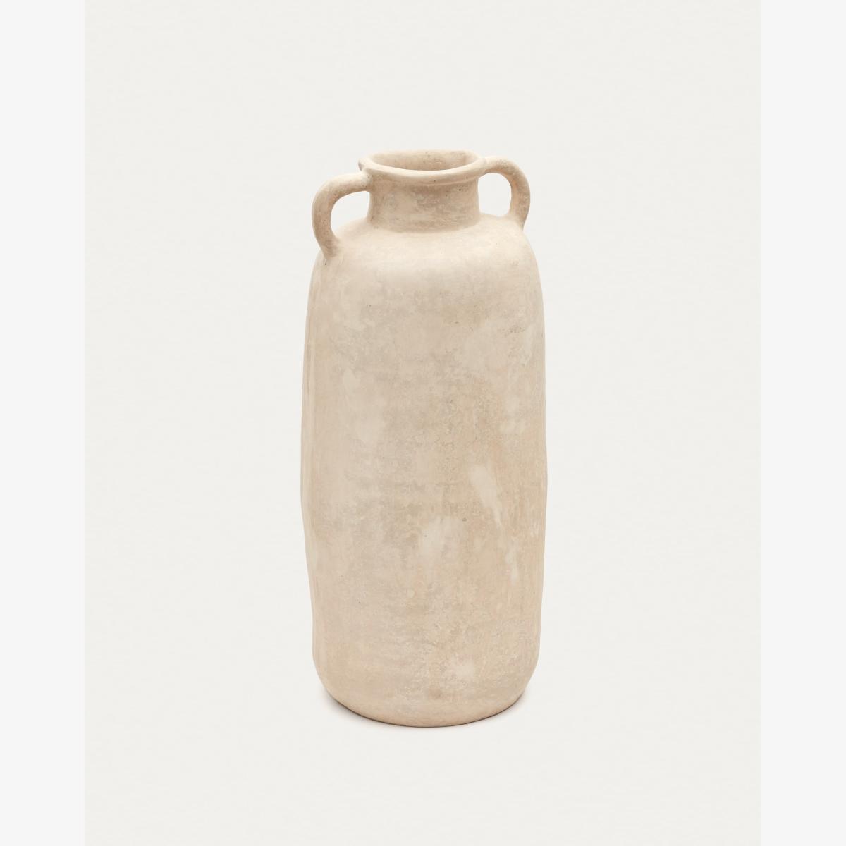 I love the Miley beige papier-mâché vase for its understated elegance and versatile colour. Its neutral tone means it can seamlessly suit a range of interiors, from Scandi minimalism to rustic or boho styles. The tall, slender shape makes it perfect for showcasing single-stem flowers or minimalistic foliage, while its sizeable stature adds a sculptural element as a standalone piece. For styling tips, try placing it on a console or sideboard, paired with other natural materials like wood or woven baskets for a cohesive look. It works well when kept simple to highlight its texture, but also pairs beautifully with dried blooms for an effortless charm.