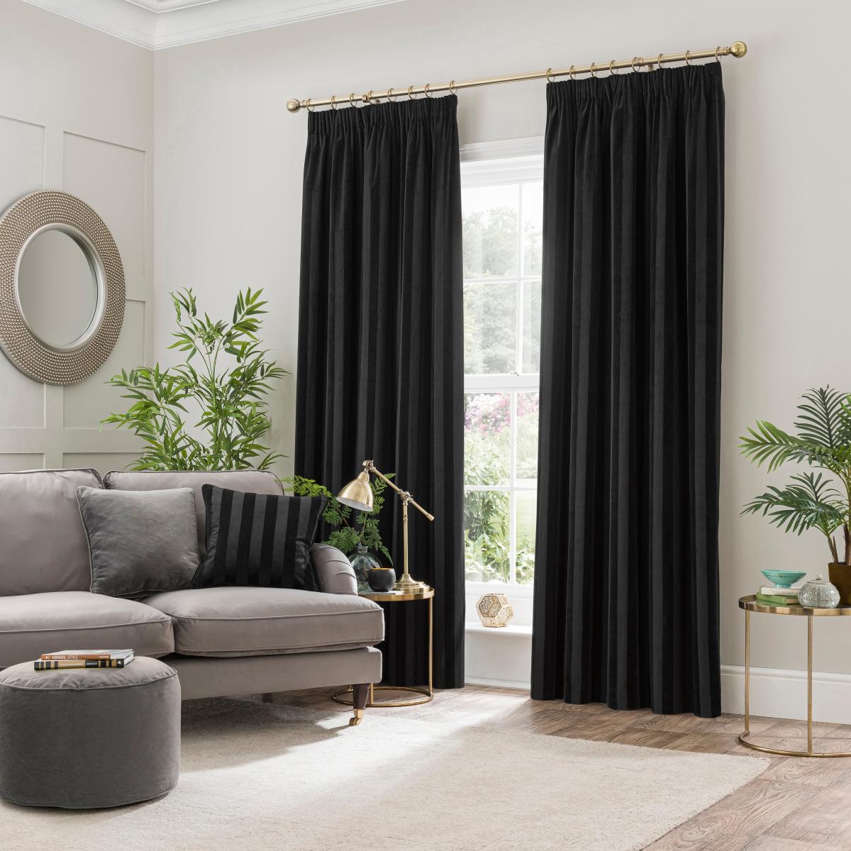 Milford Stripe Pencil Pleat Curtains Black