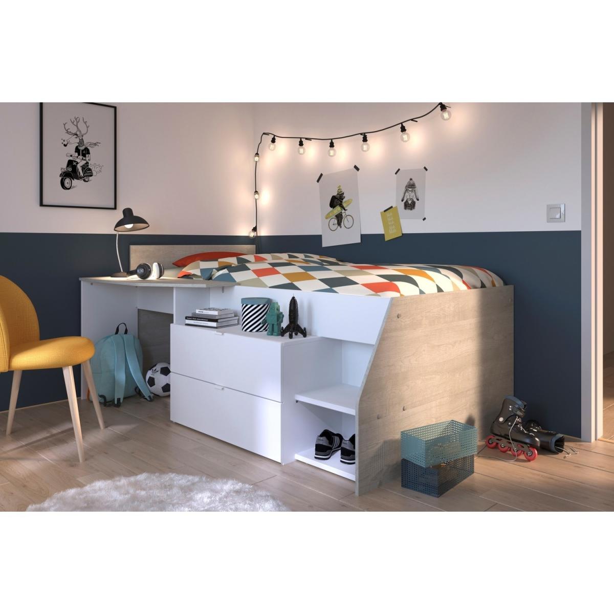 Milky White Mid Sleeper Bed with Desk and 2 Drawers - Kids Avenue
