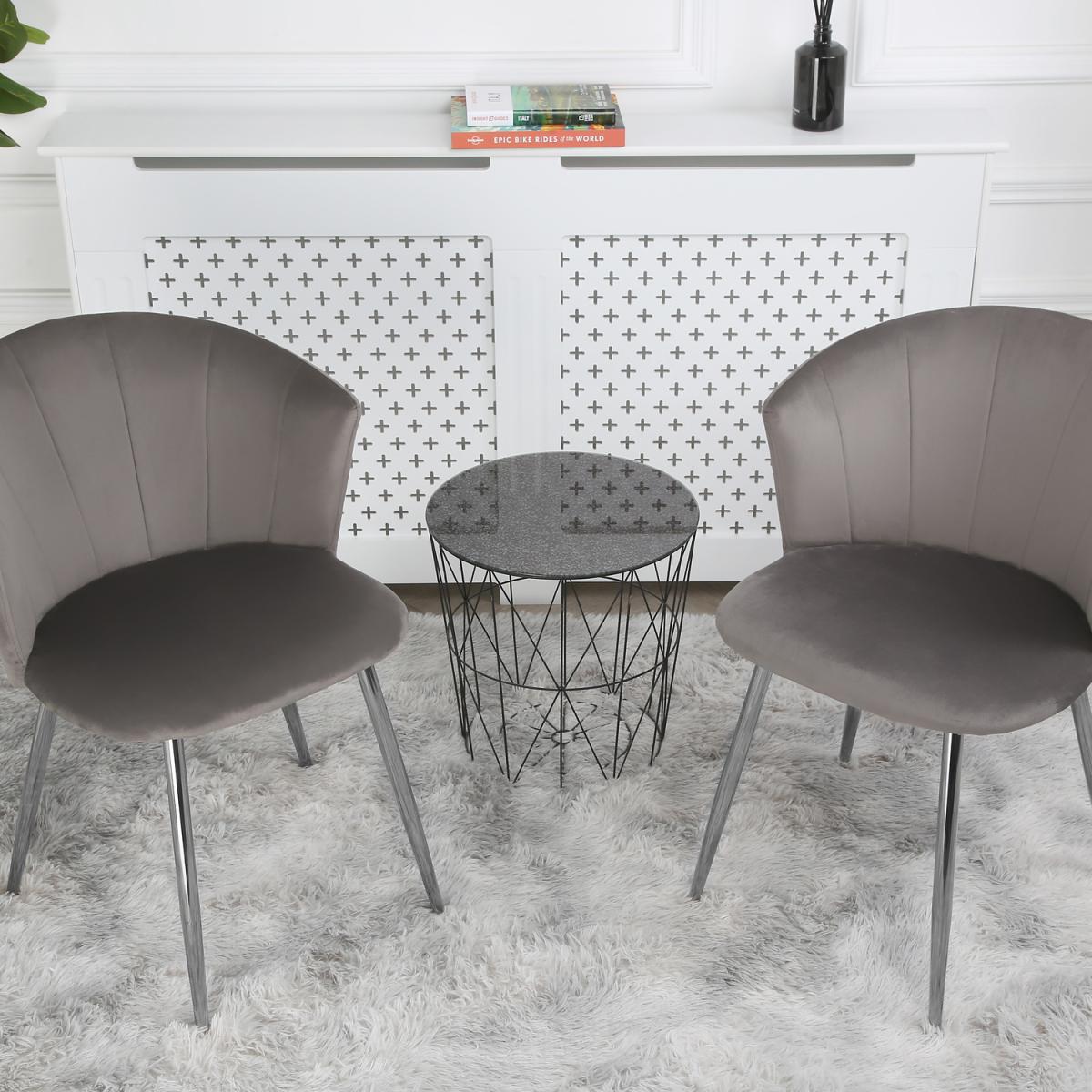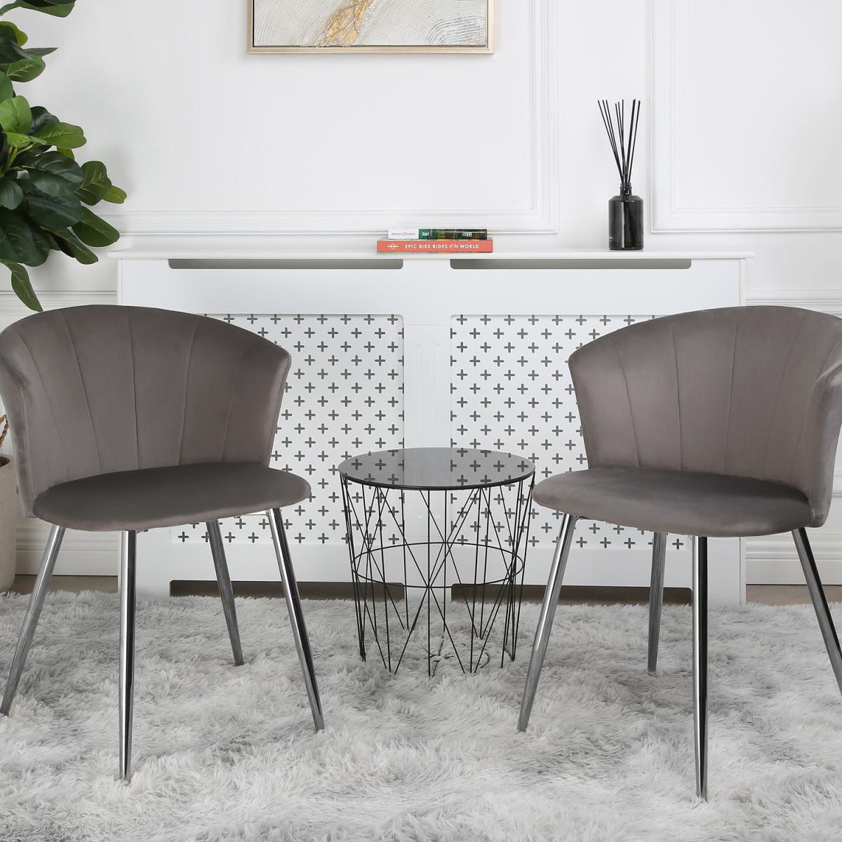 Mill Velvet Dining Chair Set of 2 - Grey Velvet and Silver Leg
