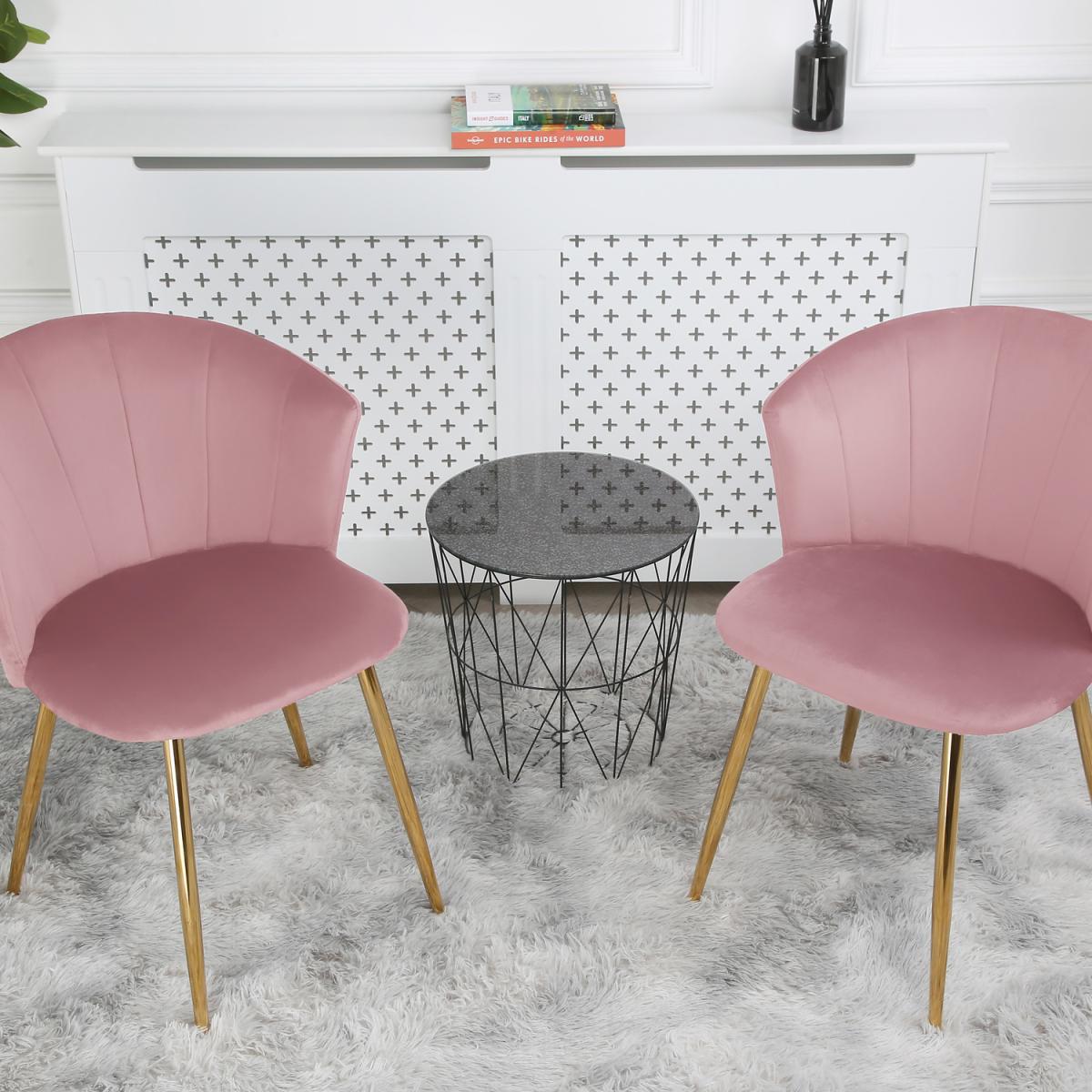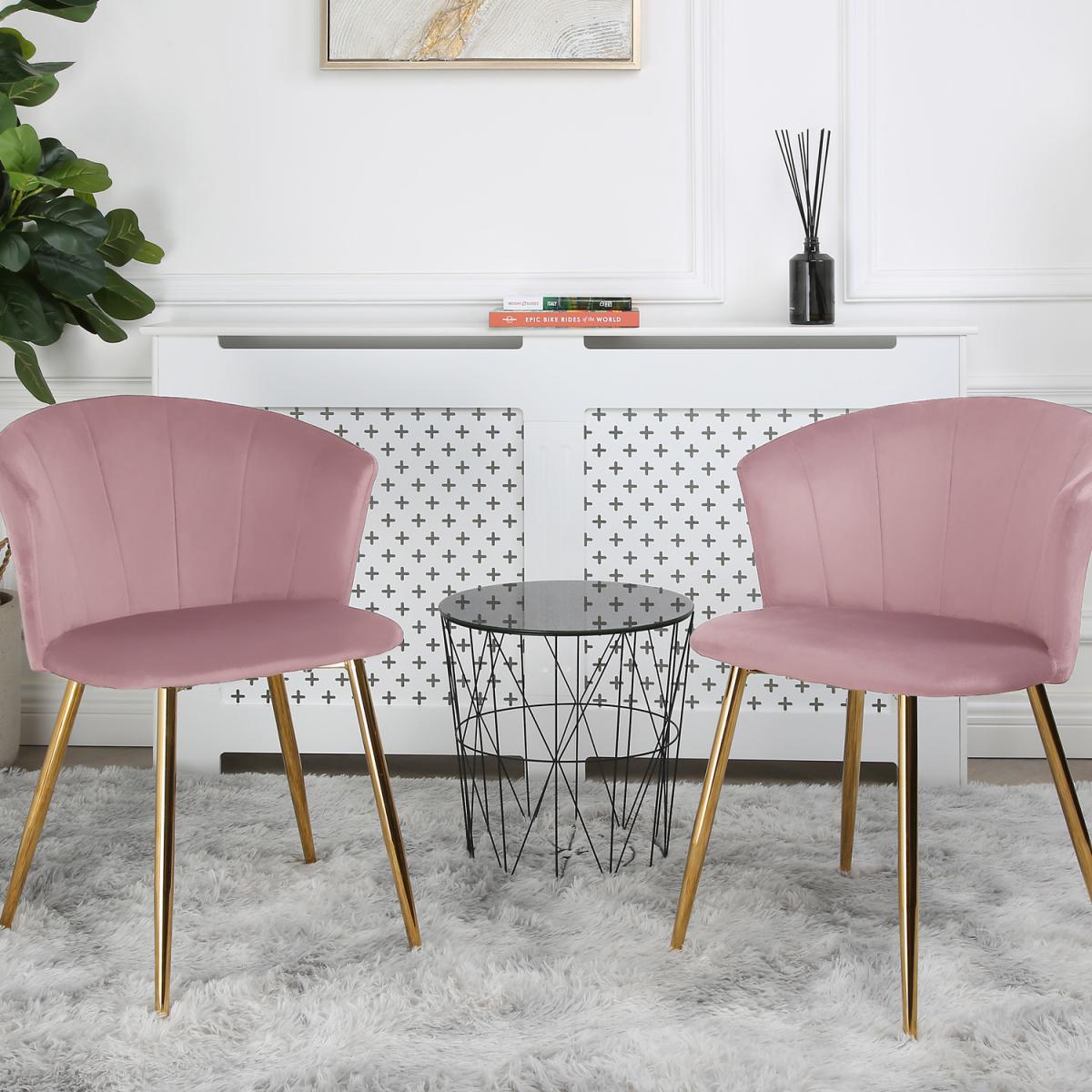 Mill Velvet Dining Chair Set of 2 - Pink Velvet and Gold Leg