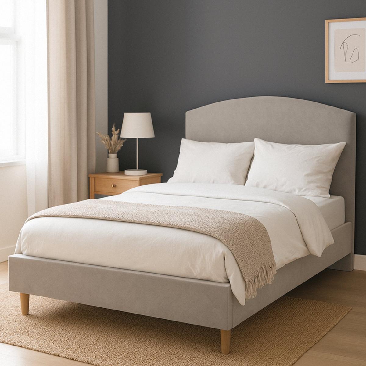 Millbrook bed frames are handcrafted in the UK, with solid wooden slats offering firm support. Thoughtfully designed with space beneath for extra storage, they combine practicality with style. Upholstered in six curated fabrics (four plush velvets and two textured wovens), to suit any interior. Swatches available to order. Available in Double, King, and Super King sizes. The Archer headboard, an elegant arched silhouette with a plain finish, is simple yet distinguished in its presence. Proudly made and upholstered in the UK using carefully selected, high-quality materials for lasting comfort and style. Our made to order furniture service means you can choose from different options, such as fabric, size and shape to create a beautiful bespoke piece of furniture. Because this piece is designed just for you, you might notice the delivery time is a little longer than usual. A plush velvet fabric that offers a smooth, inviting feel with a soft texture and subtle sheen. Fabric frame. Velvet fabric - 100% polyester. Wooden feet. Base with wooden slats. No storage. Size W146, L207, H120cm. Height to top of siderail 37.5cm. 15cm clearance between floor and underside of bed. Weight 55.4kg. Total maximum user weight 220kg. Supplied assembled - 2 people recommended. Package Dimensions: Package 1 dimensions: H22, W29, D207cm. Package 1 weight: 23.5kg. Package 2 dimensions: H9, W122, D138cm. Package 2 weight: 23.5kg. Package 3 dimensions: H7, W25, D137cm. Package 3 weight: 13.5kg. General Information: Manufacturer's 1 year guarantee.