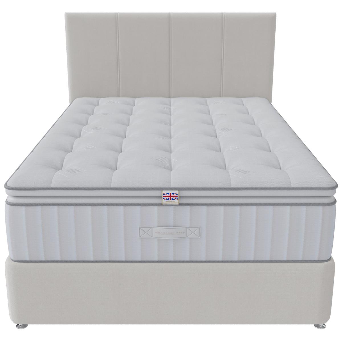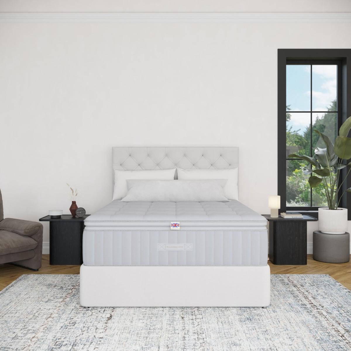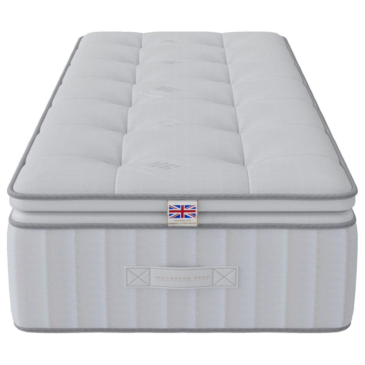 The Millbrook Beds Illustrious 2500 Pillow Top offers unmatched luxury with an extra layer of luxurious, cushioned comfort that cradles your body for a restful sleep Our Smooth-Tech tuft-free cover removes lumps, ensuring a plush, even surface. Featuring 2500 pocket springs and Ultra Edge border tech, it provides edge-to-edge support. Made with 100% natural fillings, including English spun cotton and Hampshire wool, it enhances deep, uninterrupted sleep, offering the perfect balance of luxury, comfort, and relaxation. Sumptuous chemical free unique Millbrook Smooth-Tech tuft free sleeping surface. Millbrook Ultra Edge spring system. Part of the Illustrious collection. Medium feel. Pocket sprung mattress with 2500 springs. Damask cover with. No roll together. Mattress size W90, L190, D30cm. Mattress Weight 31kg. Rotate mattress regularly. Made in the UK. Package Dimensions: Package 1 dimensions: H30, W95, D195cm. Package 1 weight: 31kg. General information: Manufacturer's 5 year guarantee.