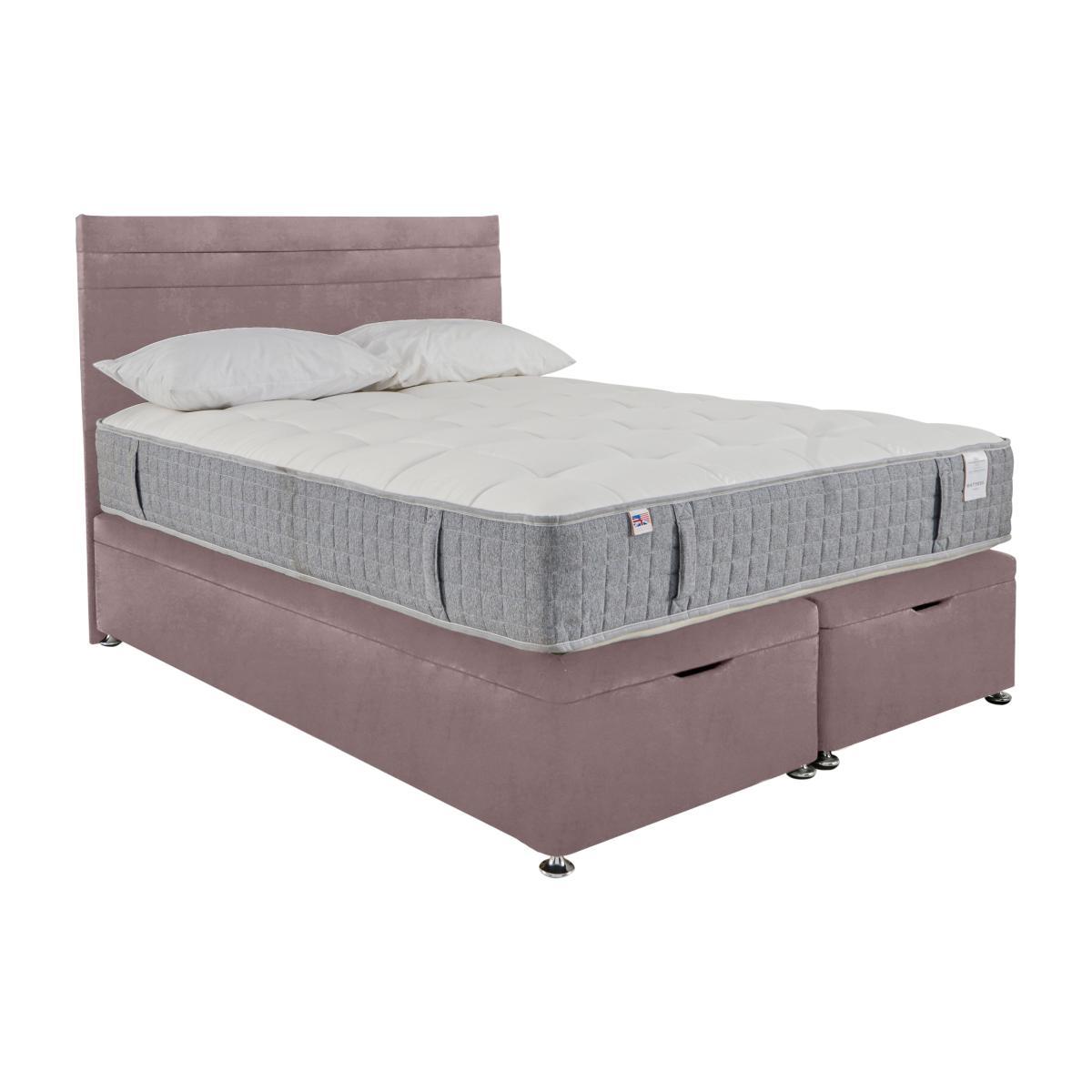 Ottoman divan base in a wide choice of colours, with a comfy, cooling mattress which uses a pioneering eco-friendly material instead of foam, saving bottles from landfill. Headboard shown available separately. Why you'll love it. Luxurious modern divan set from Millbrook Beds. With a breathable, supportive sprung mattress. Mattress is eco-friendly, 100% recyclable and foam free. 1000 encapsulated pocket springs in king size. Layers of cooling Hampshire wool and English spun cotton. Mattress fillings encased in revolutionary Nemoflex®. A yarn and fibre blend made from recycled plastic bottles. Hidden tufting for a smooth, flat sleeping surface. Contemporary divan base in a wide choice of colours. Piston-assisted end lift ottoman, easy to open. Handmade in the UK, exclusively for Furniture Village. What you need to know. Mattress type: Pocket spring. Mattress depth: 29 cm. Firmness: Medium feel. Springs: 1000 pocket springs in king size. Pillow top: No. Fillings: Breathable Nemoflex® recycled yarn and fibre, temperature regulating Hampshire Wool, English spun-cotton. Borders: Nemoflex® which promotes airflow. Vertical carry handles. ???. Edge support: Pocket springs and reinforced border for edge to edge support. Cover: Soft, chemical free, viscose cotton. Requires turning: No. Sizes: Single, double, king, super king. Please take care opening and closing the ottoman. Double, king and super king divan bases are delivered in two pieces for ease of delivery. Mattress care: Air for 4 hours before using to remove any odour. Indentations caused by settlement of fillings or body weight are normal and are not considered defects. If used on a slatted bed frame, slats must be no more than 7 cm apart. Rotate regularly. We recommend the use of a mattress protector.