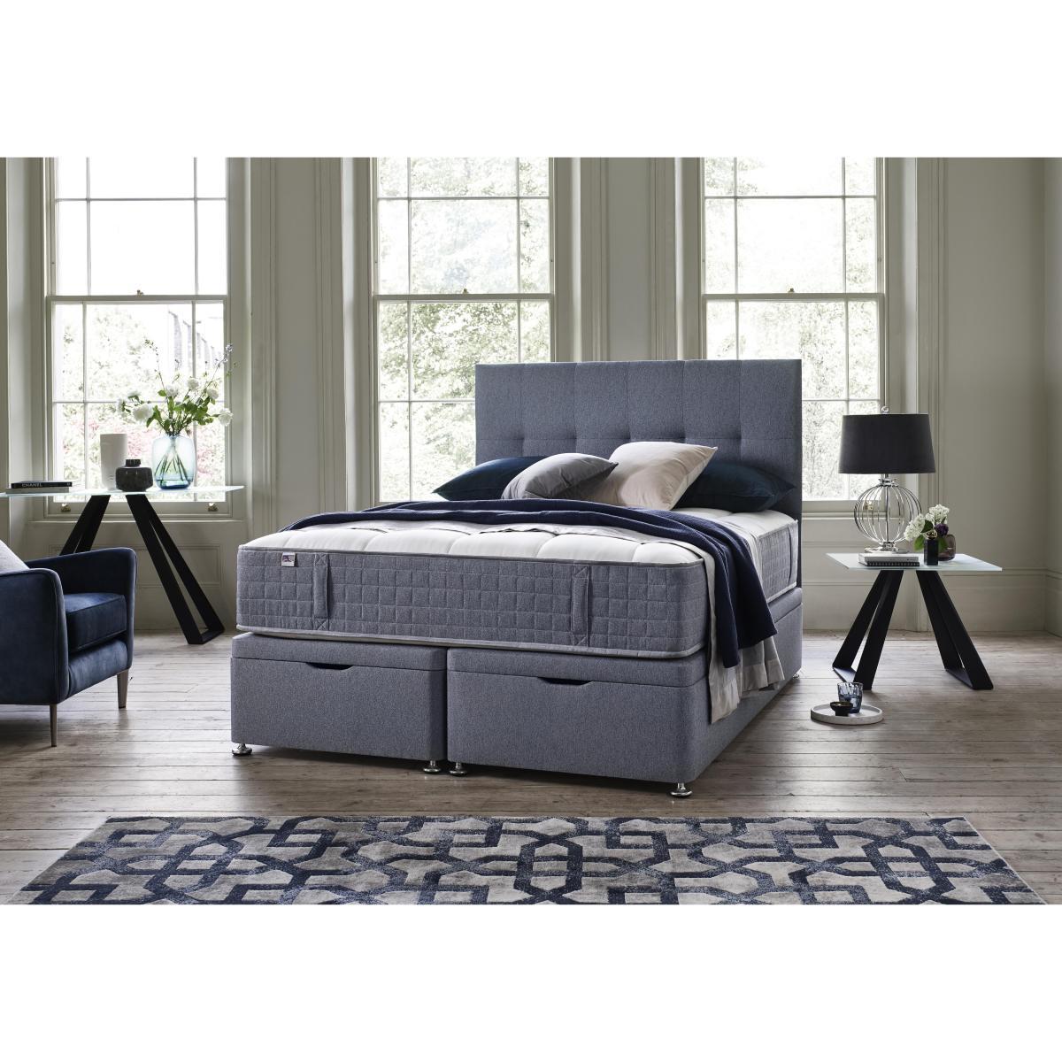 Stylish divan with a comfy, cooling sprung mattress replacing foam with a pioneering recycled material. The ottoman divan base comes in a wide choice of colours. Headboard shown available separately. Why you'll love it. Luxurious modern divan set from Millbrook Beds. With a breathable, supportive sprung mattress. Mattress is eco-friendly, 100% recyclable and foam free. 2000 encapsulated pocket springs in king size. Layers of cooling Hampshire wool and English spun cotton. Mattress fillings encased in revolutionary Nemoflex®. A yarn and fibre blend made from recycled plastic bottles. Hidden tufting for a smooth, flat sleeping surface. Contemporary divan base in a wide choice of colours. Piston-assisted end lift ottoman, easy to open. Handmade in the UK, exclusively for Furniture Village. What you need to know. Mattress type: Pocket spring. Mattress depth: 30 cm. Firmness: Medium feel. Springs: 2000 pocket springs in king size. Pillow top: No. Fillings: Breathable Nemoflex® recycled yarn and fibre, temperature regulating Hampshire Wool, English spun-cotton. Borders: Nemoflex® which promotes airflow. Vertical carry handles. ???. Edge support: Pocket springs and reinforced border for edge to edge support. Cover: Viscose cotton. Requires turning: No. Sizes: Single, double, king, super king. Please take care opening and closing the ottoman. Double, king and super king divan bases are delivered in two pieces for ease of delivery. Mattress care: Air for 4 hours before using to remove any odour. Indentations caused by settlement of fillings or body weight are normal and are not considered defects. If used on a slatted bed frame, slats must be no more than 7 cm apart. Rotate regularly. We recommend the use of a mattress protector.