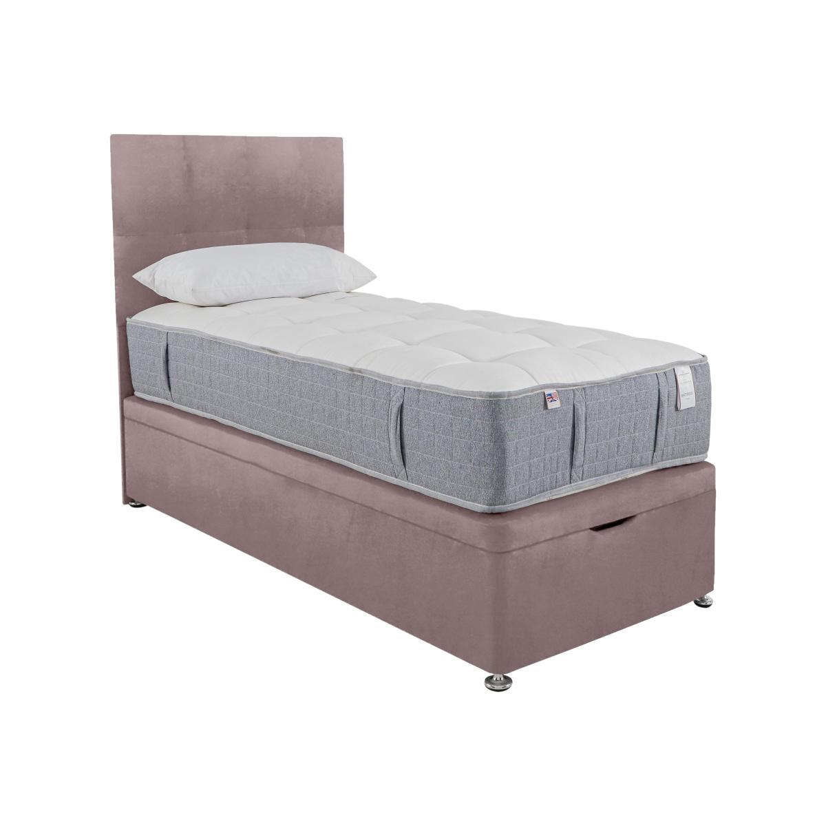Stylish divan with a comfy, cooling sprung mattress replacing foam with a pioneering recycled material. The ottoman divan base comes in a wide choice of colours. Headboard shown available separately. Why you'll love it. Luxurious modern divan set from Millbrook Beds. With a breathable, supportive sprung mattress. Mattress is eco-friendly, 100% recyclable and foam free. 2000 encapsulated pocket springs in king size. Layers of cooling Hampshire wool and English spun cotton. Mattress fillings encased in revolutionary Nemoflex®. A yarn and fibre blend made from recycled plastic bottles. Hidden tufting for a smooth, flat sleeping surface. Contemporary divan base in a wide choice of colours. Piston-assisted end lift ottoman, easy to open. Handmade in the UK, exclusively for Furniture Village. What you need to know. Mattress type: Pocket spring. Mattress depth: 30 cm. Firmness: Medium feel. Springs: 2000 pocket springs in king size. Pillow top: No. Fillings: Breathable Nemoflex® recycled yarn and fibre, temperature regulating Hampshire Wool, English spun-cotton. Borders: Nemoflex® which promotes airflow. Vertical carry handles. ???. Edge support: Pocket springs and reinforced border for edge to edge support. Cover: Viscose cotton. Requires turning: No. Sizes: Single, double, king, super king. Please take care opening and closing the ottoman. Double, king and super king divan bases are delivered in two pieces for ease of delivery. Mattress care: Air for 4 hours before using to remove any odour. Indentations caused by settlement of fillings or body weight are normal and are not considered defects. If used on a slatted bed frame, slats must be no more than 7 cm apart. Rotate regularly. We recommend the use of a mattress protector.