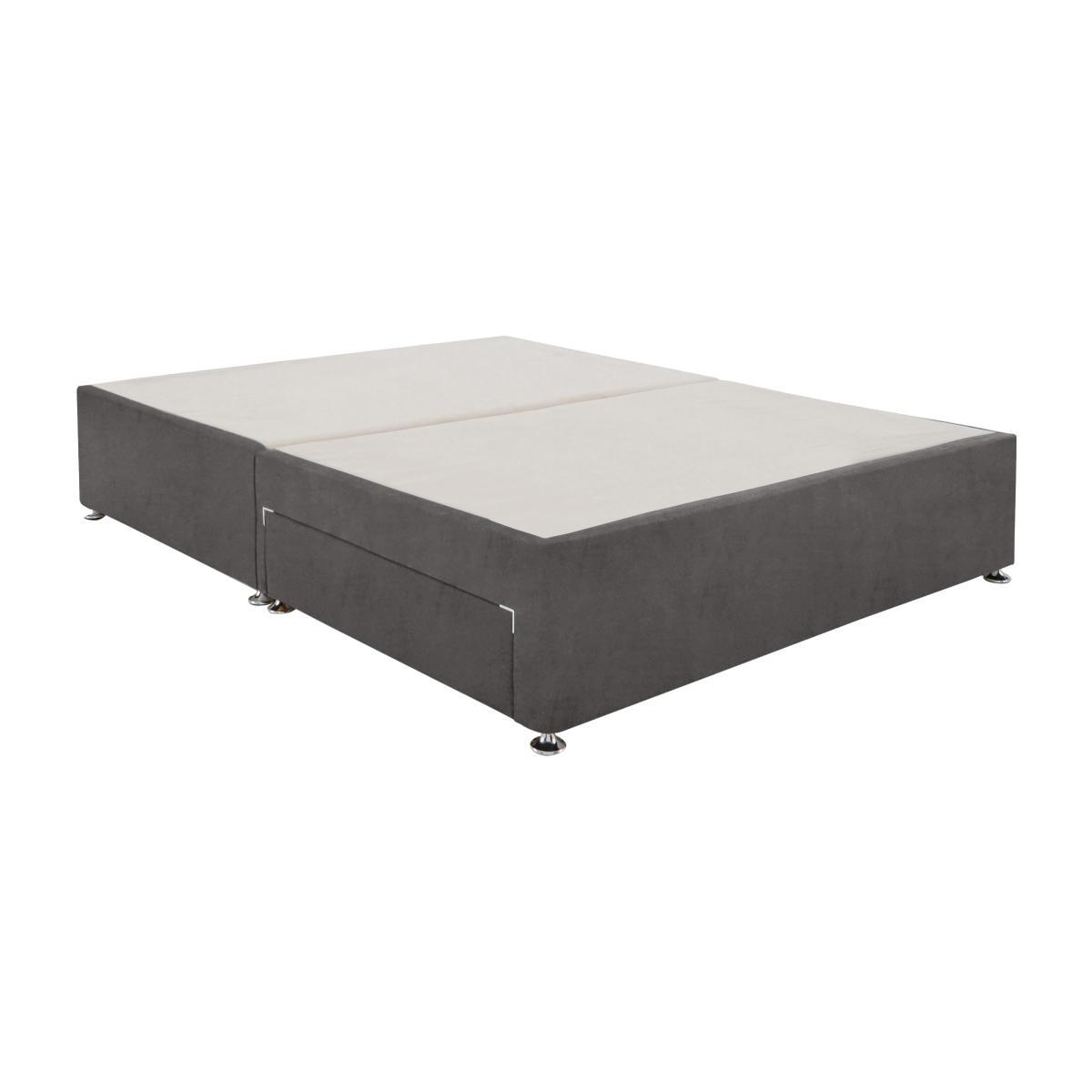 This simply designed, contemporary divan base is beautifully made by Millbrook beds here in the UK. It has optional drawer storage and comes in a wide choice of fabrics and colours. Headboard shown available separately.>. Why you'll love it. Luxurious modern divan base from Millbrook Beds. Platform top gives plenty of support. With the option of a wide choice of drawer storage. Complete the look with one of Millbrook Beds’ stylish floor standing headboards, available to buy separately. Handmade in the UK, exclusively for Furniture Village. What you need to know. Sizes: Single, double, king, super king. Drawer configurations available: 2 drawer, 4 drawer, 2+2 drawer. Double, king and super king divan bases are delivered in two pieces for ease of delivery.