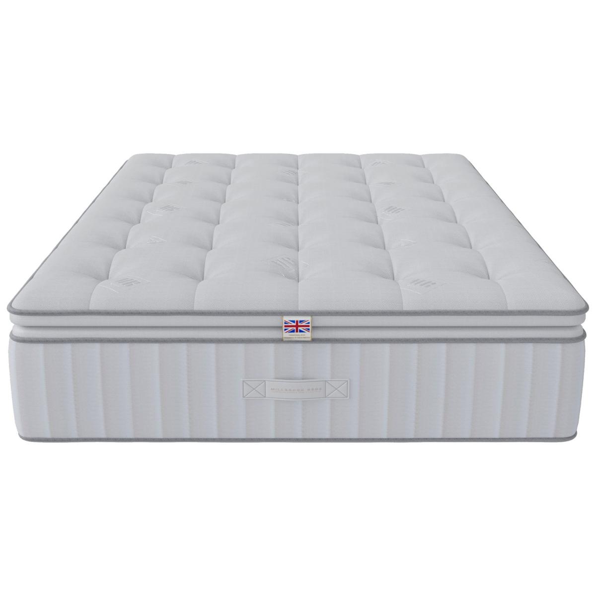 The Millbrook Beds Sensation 3500 Pillow Top offers unmatched luxury with an extra layer of luxurious, cushioned comfort that cradles your body for a restful sleep. Our Smooth-Tech tuft-free cover removes lumps, ensuring a plush, even surface. Featuring 3500 pocket springs and Ultra Edge border tech, it provides edge-to-edge support. Made with 100% natural fillings, including English spun cotton and Hampshire wool, it enhances deep, uninterrupted sleep, offering the perfect balance of luxury, comfort, and relaxation. Sumptuous chemical free unique Millbrook Smooth-Tech tuft free sleeping surface. Millbrook Ultra Edge spring system. Part of the Sensation collection. Firm feel. Pocket sprung mattress with 3500 springs. Damask cover with. No roll together. Mattress size W150, L200, D30cm. Mattress Weight 54kg. Rotate mattress regularly. Made in the UK. Package Dimensions: Package 1 dimensions: H30, W155, D205cm. Package 1 weight: 54kg. General information: Manufacturer's 5 year guarantee.