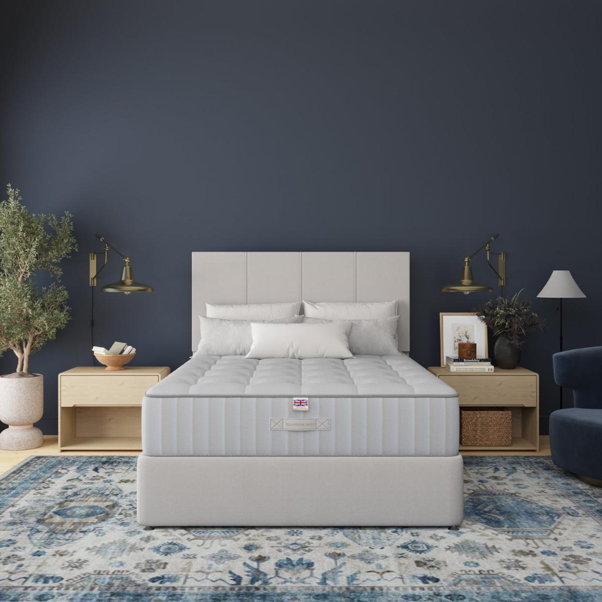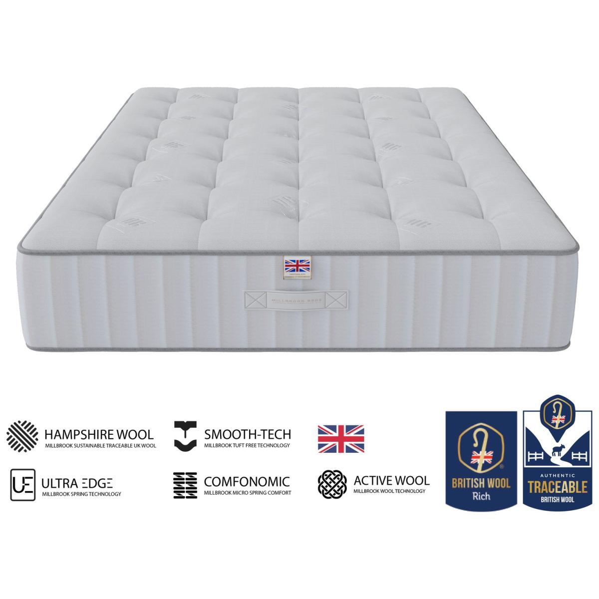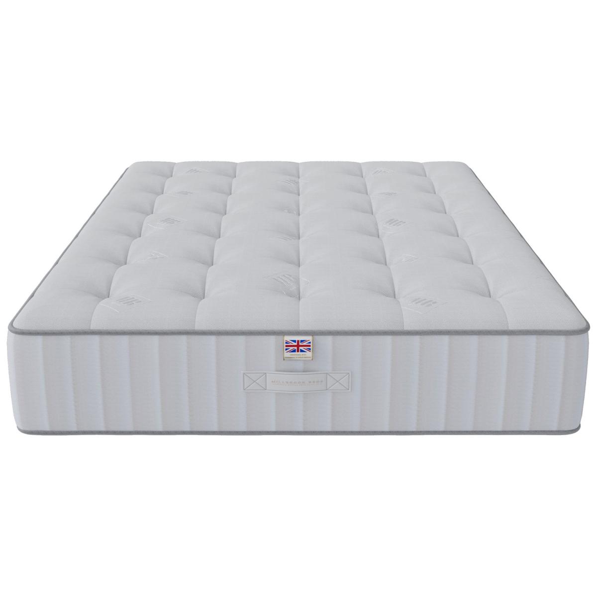 The Millbrook Beds Tranquil 3000 mattress blends premium materials with advanced tech for luxury support and comfort. Our Smooth-Tech tuft-free cover removes lumps, ensuring a plush, even surface. The ultra edge border tech delivers edge-to-edge support. Made with 100% natural fillings, including English spun cotton and Hampshire wool, it enhances deep, uninterrupted sleep. A perfect balance of luxury, durability, and relaxation. Sumptuous chemical free unique Millbrook Smooth-Tech tuft free sleeping surface. Millbrook Ultra Edge spring system. Part of the Tranquil collection. Medium firm feel. Pocket sprung mattress with 3000 springs. Damask cover with. No roll together. Mattress size W135, L190, D31cm. Mattress Weight 46kg. Rotate mattress regularly. Made in the UK. Package Dimensions: Package 1 dimensions: H31, W140, D195cm. Package 1 weight: 46kg. General information: Manufacturer's 5 year guarantee.