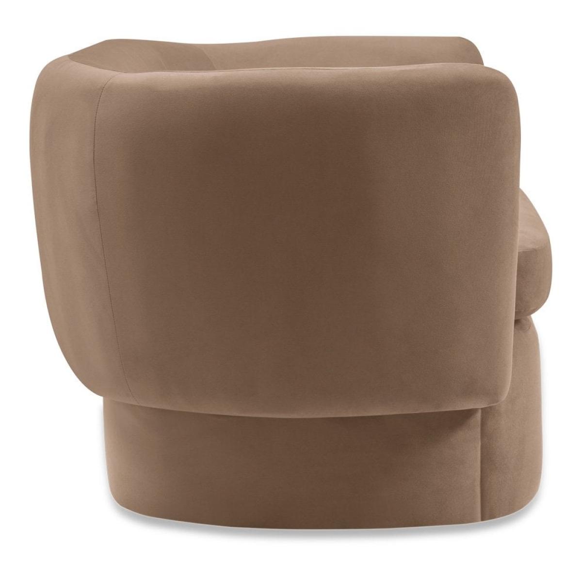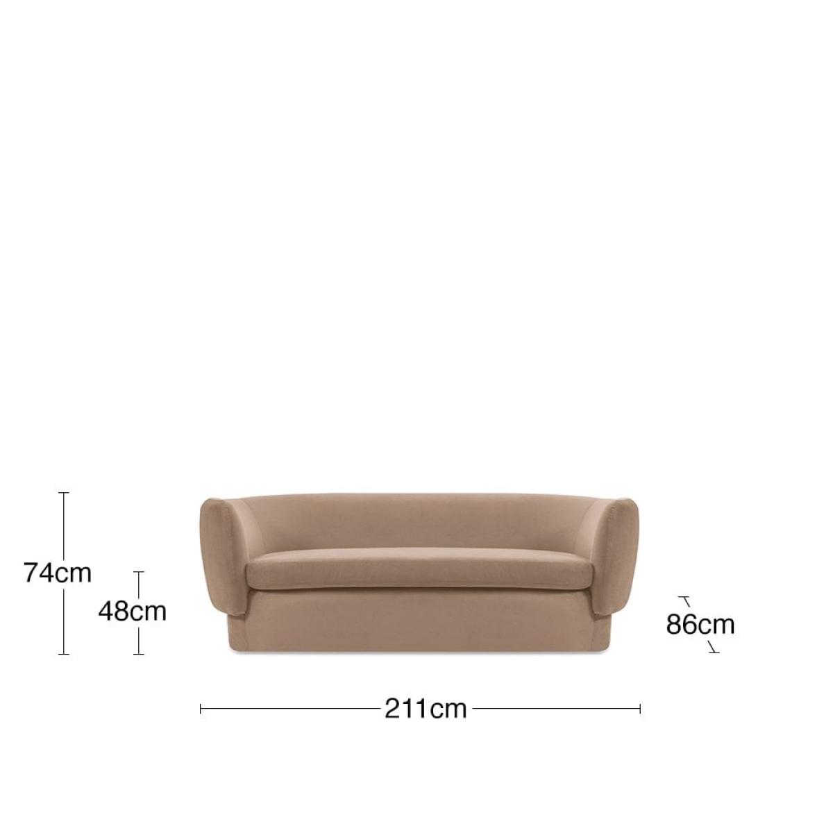 I love this three-seater because of its versatile taupe hue and sustainable velvet fabric, which gives it a contemporary yet understated look. It works well in both modern and transitional interiors, adding a touch of softness and warmth without overpowering the space. Practical styling tips include pairing it with textured cushions in complementary colours for added visual interest, and placing it against a neutral or muted backdrop to let its colour and fabric texture stand out. Its clean lines and neutral tone make it a flexible choice that can adapt easily to different décor schemes and accessories, making it a long-term staple in any living room.
