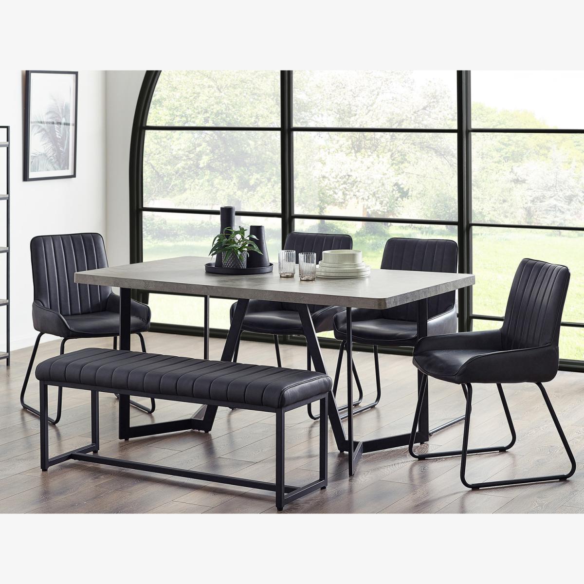 Miller and Soho Dining Set - Concrete Effect / Set includes Table, Bench and 4 Chairs.