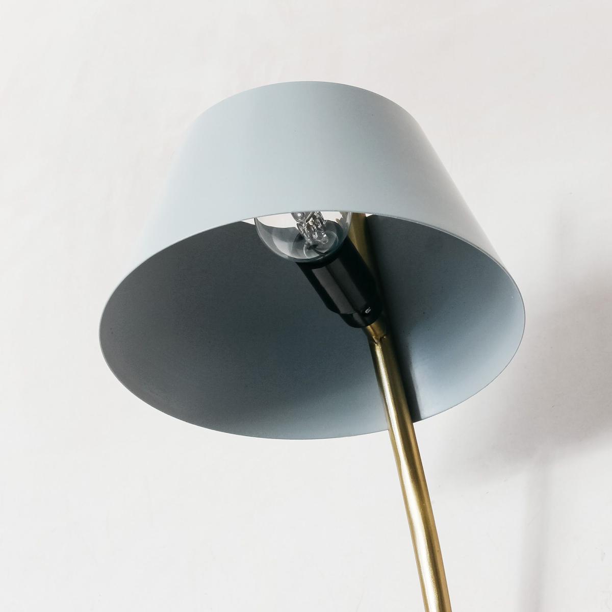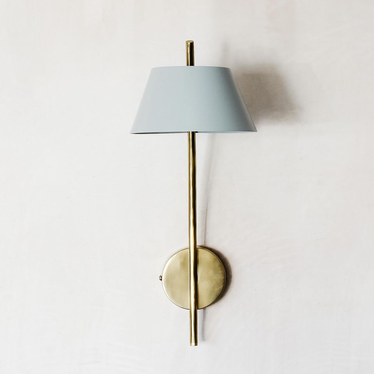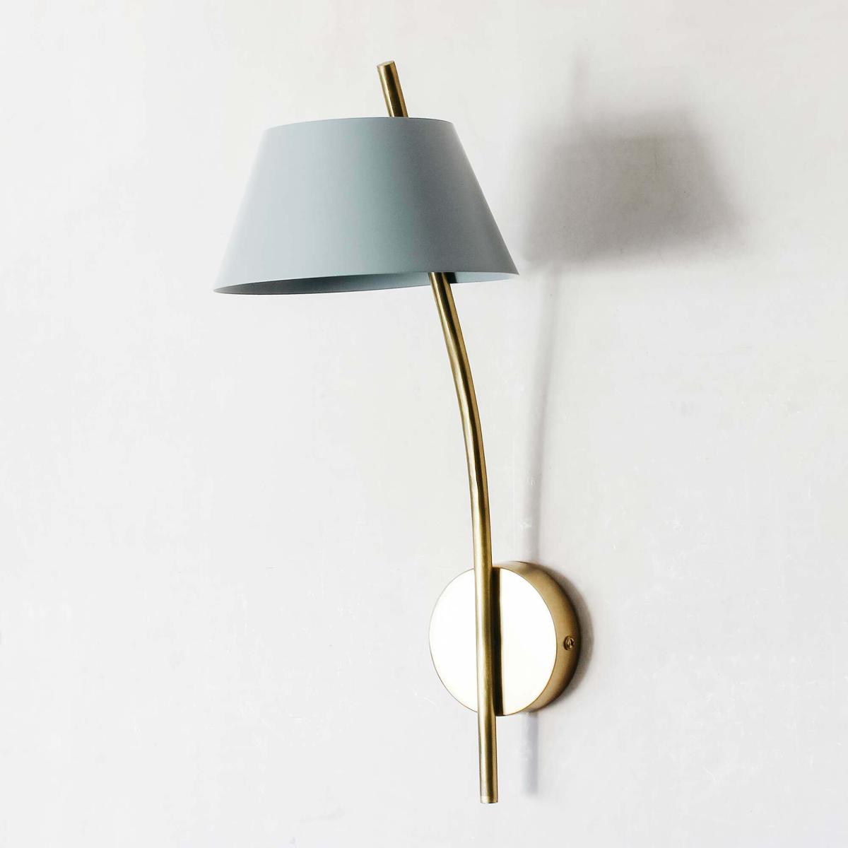 A nod to retro design for the contemporary home, the Miller Wall Light features a slim brass stem and a tapered shade in a cool grey.