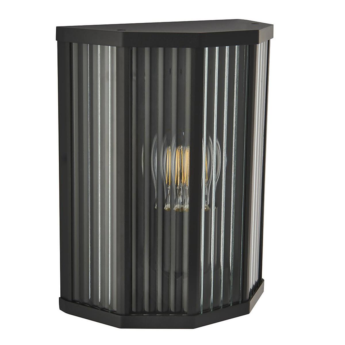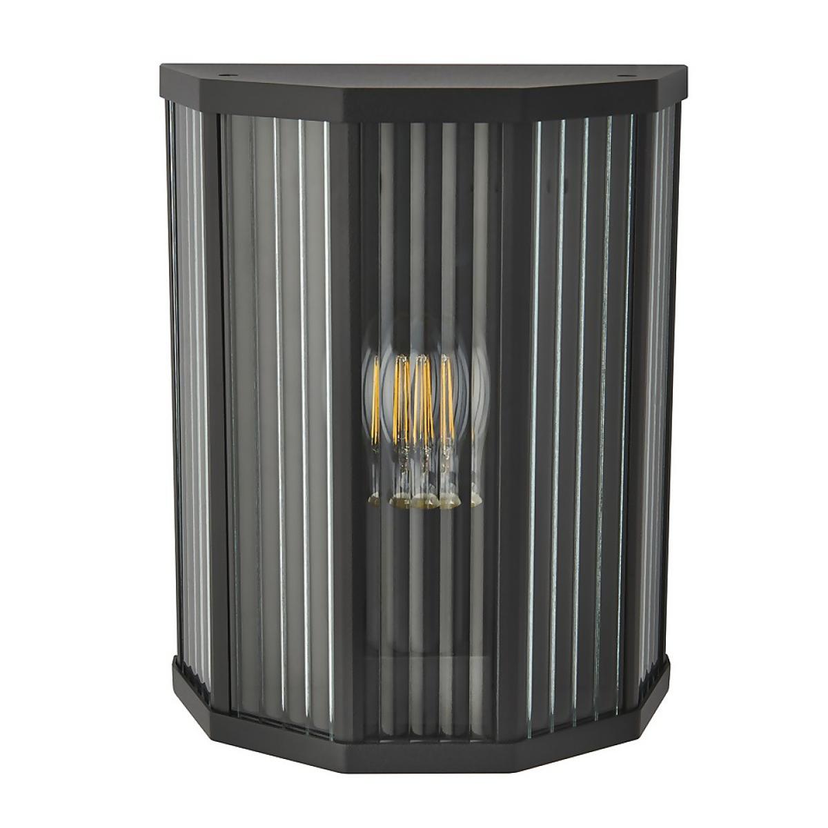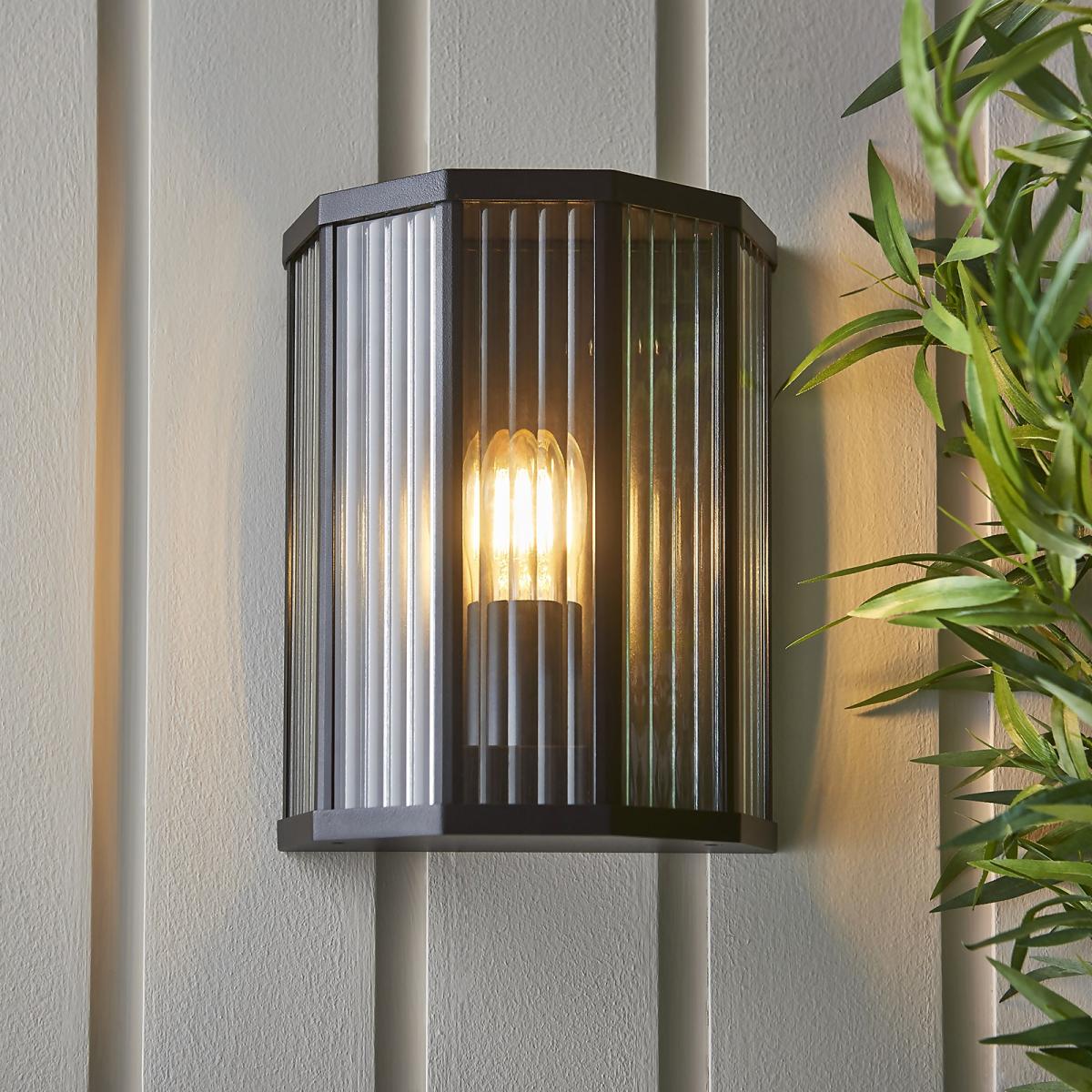 This Miller wall light combines the traditional lantern look with contemporary ribbed glass panels, providing a unique style for your home. Weatherproof making it the perfect outdoor wall light.