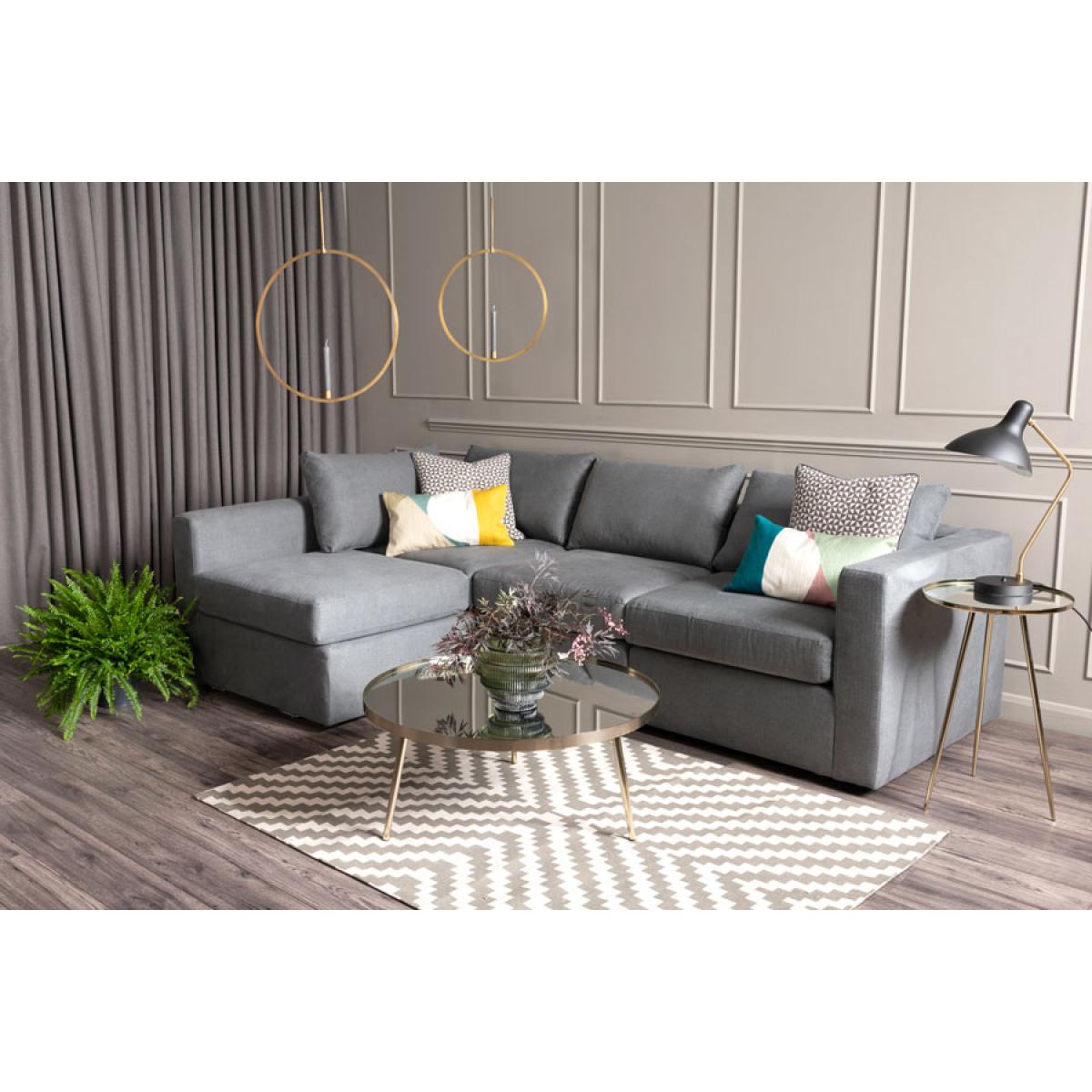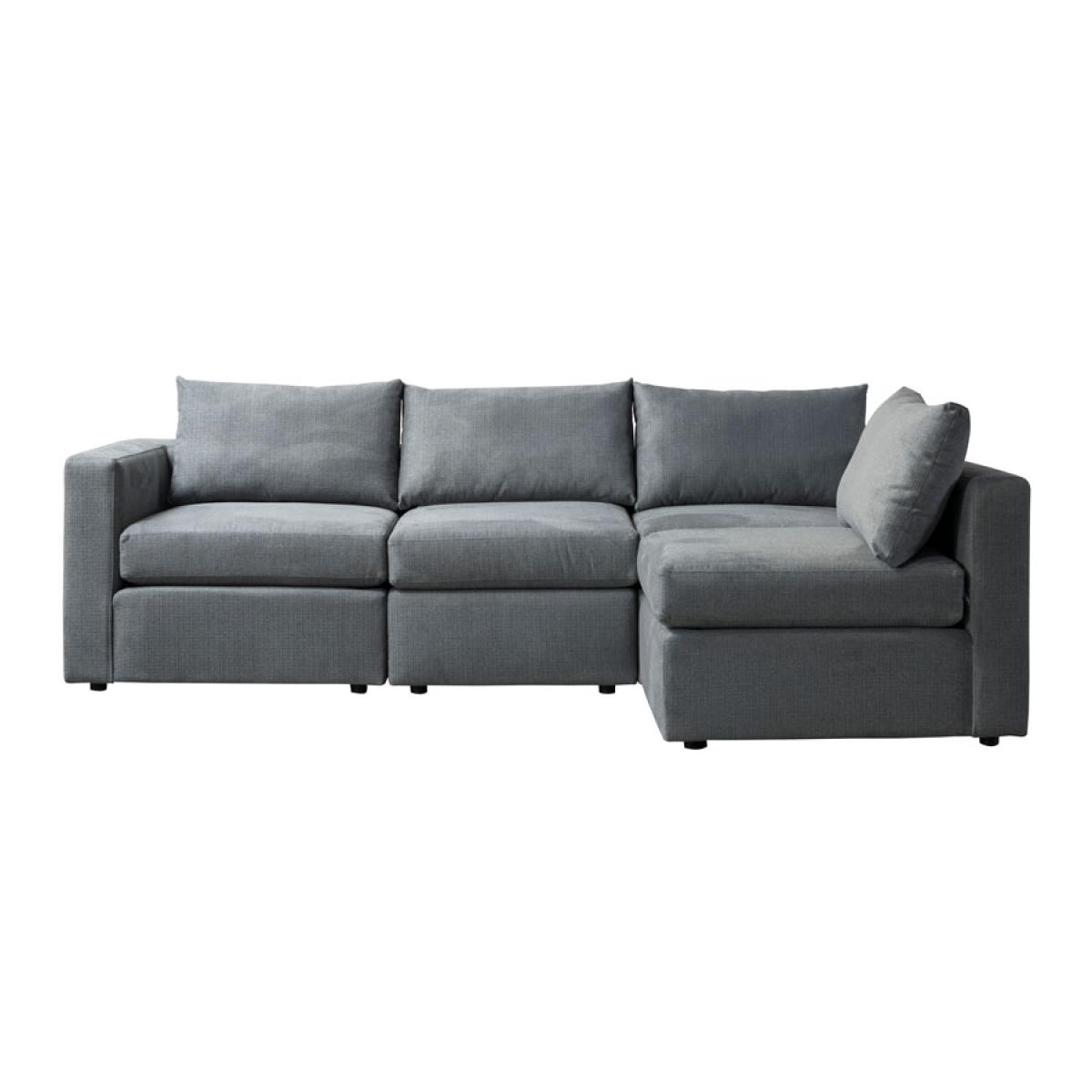 Understated contemporary design, suitable for any style interior. Sumptuous deep cushions filled with a specially developed mixture of foam, fibre and feathers. Sprung seat and backrest for maximum comfort. Practical and durable linen effect fabric with soft, tactile feel. Constructed from modular components that simply and securely connect together allowing for ease of installation and multiple configurations. Footstool section can be repositioned to create a right or left hand corner sofa to suit changing needs.