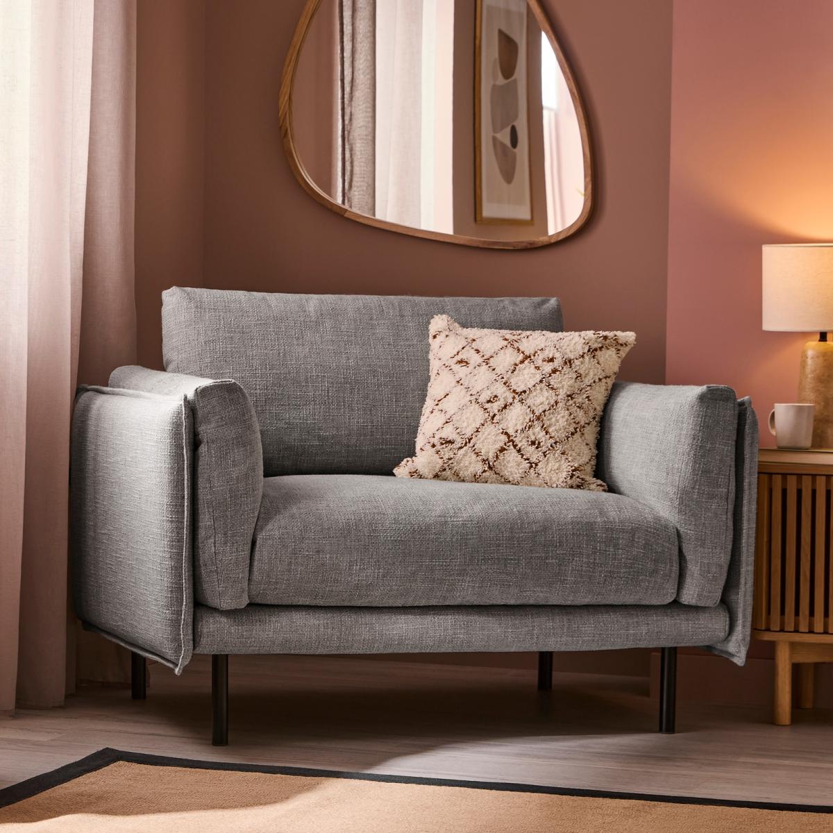Add this classic, cosy Miller armchair to your living space. Upholstered in a mid grey woven fabric this is the perfect choice to cuddle up in and enjoy some chill out time.
