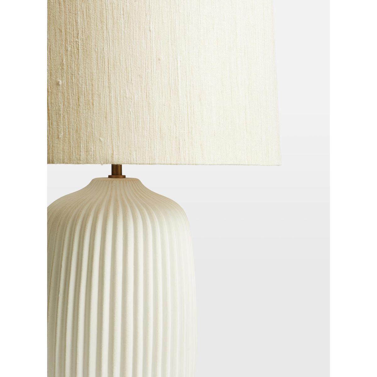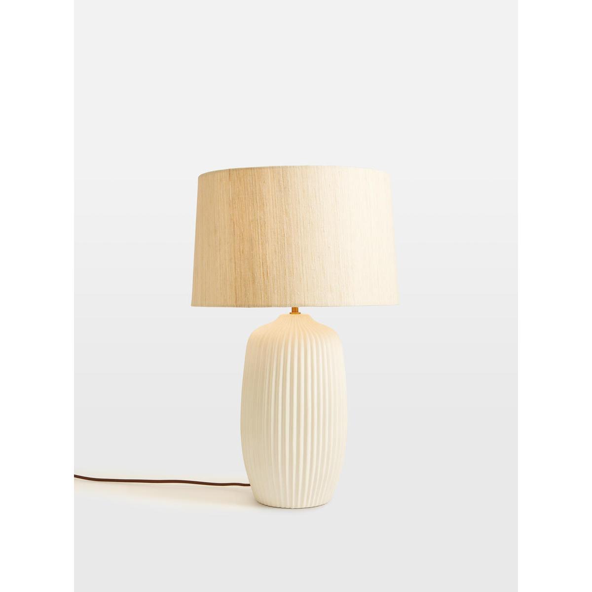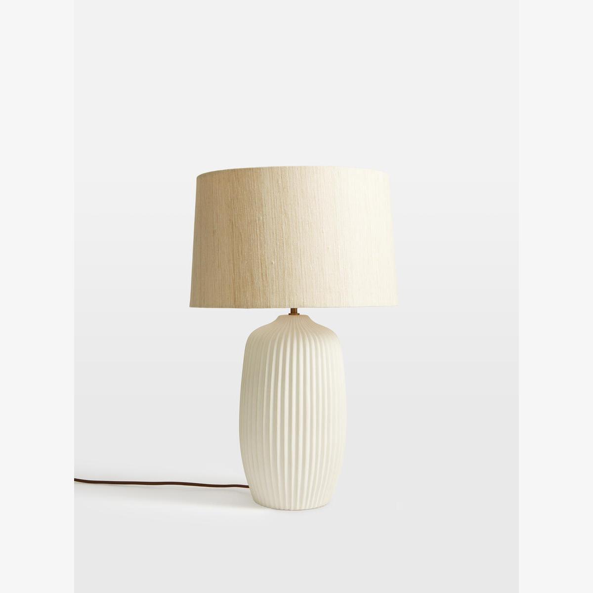 I love this lamp for its understated elegance and versatile design. Its clean, ribbed ceramic base paired with a simple, neutral fabric shade makes it a great addition to both contemporary and classic interiors. It works particularly well in living rooms and bedrooms where a subtle, cosy light is desired, and it can be styled on side tables, consoles, or dressers to add visual interest without overwhelming the space. Practical tips include using a warm-toned bulb to enhance its soft, inviting glow, and pairing it with other textured decor elements to create a cohesive look. Its neutral palette means it’s flexible enough to complement a variety of colour schemes and furnishings, making it a reliable yet stylish choice.