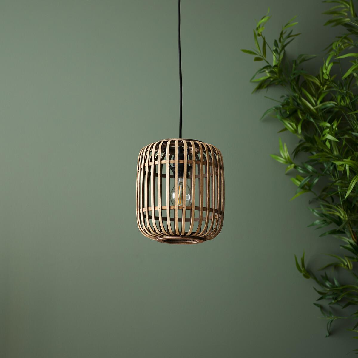 A simple and stylish pendant light inspired by nature, with sustainably sourced dark bamboo cage, creating a soft warm light. Finished with matt black paint and dark wood detailing. Product Dimensions: 32x 23.5x 24cm. Weight: 490g. Steel / Bamboo / Wood. One Size. This product will be dispatched by one of our trusted suppliers. You’ll be contacted by their selected courier about your delivery. GALLE01