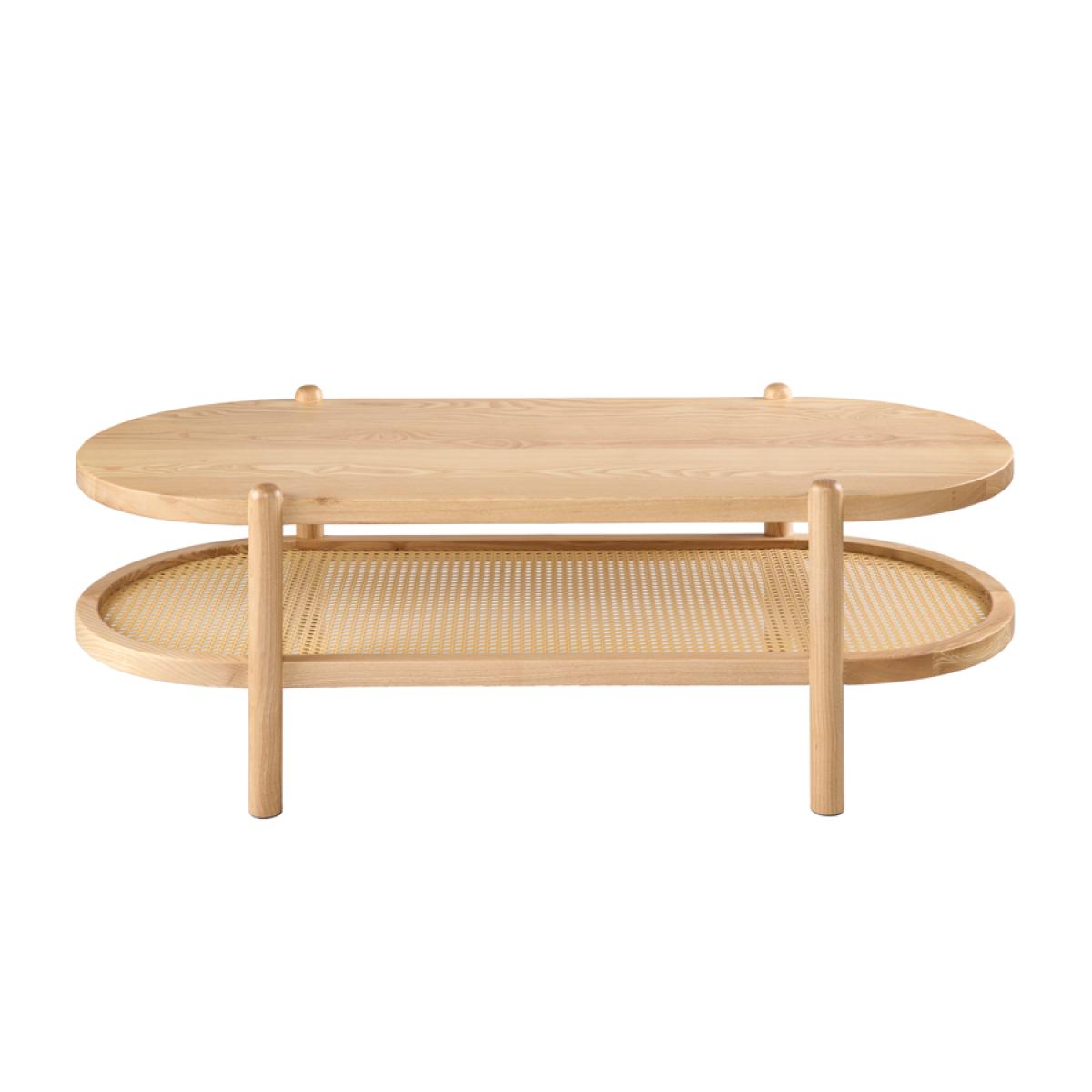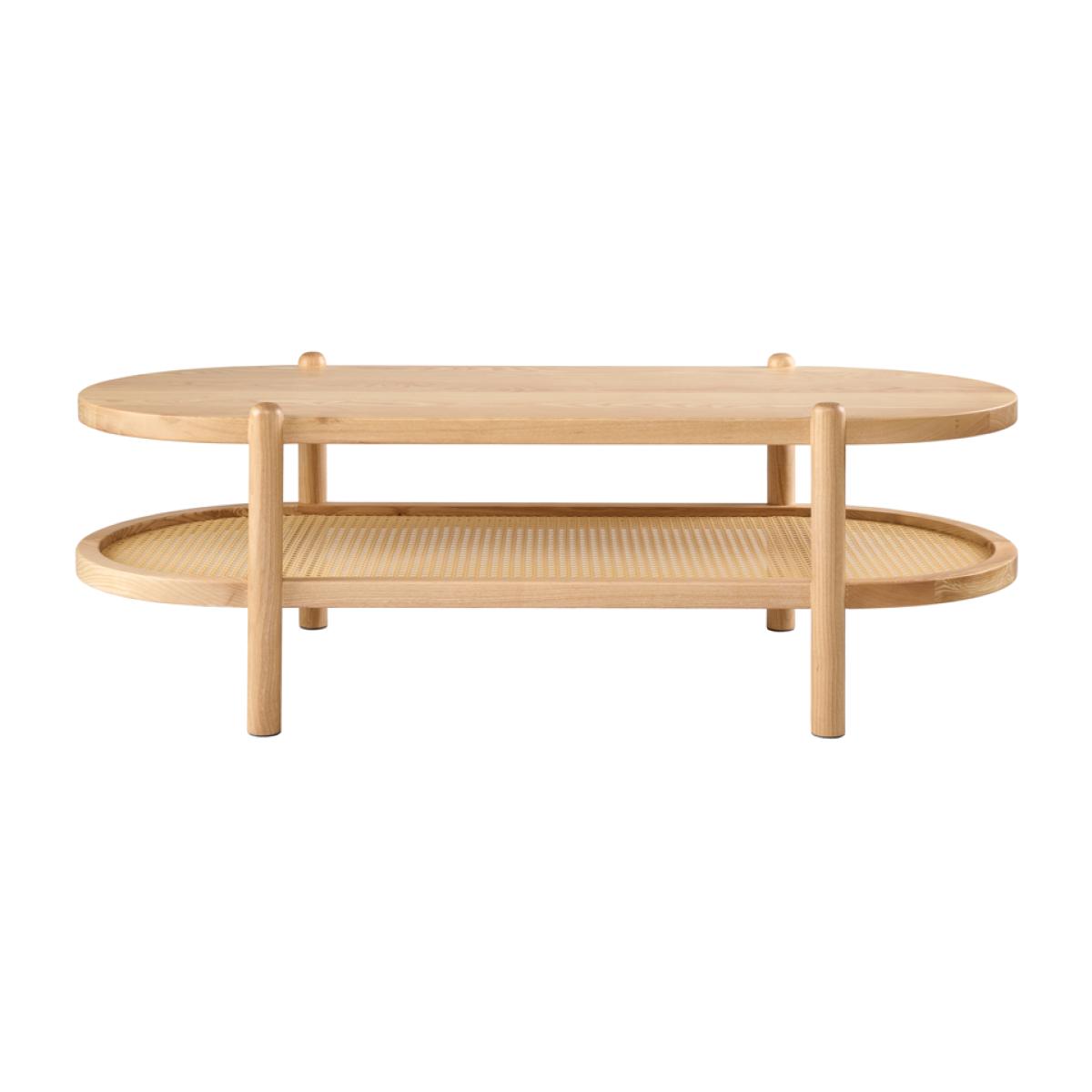 I’m a fan of the Millie table for its clean lines and light ash finish - it feels at home in Scandi, coastal or relaxed boho schemes. The lower cane shelf adds useful storage without looking bulky, so you can neatly tuck away throws or magazines in a woven basket. On the top surface, keep styling simple: a low vase of foliage, a stack of coffee-table books and a small tray for remotes. Its oval shape also makes it ideal for trickier layouts where you need to soften corners around a sofa without sacrificing surface area.