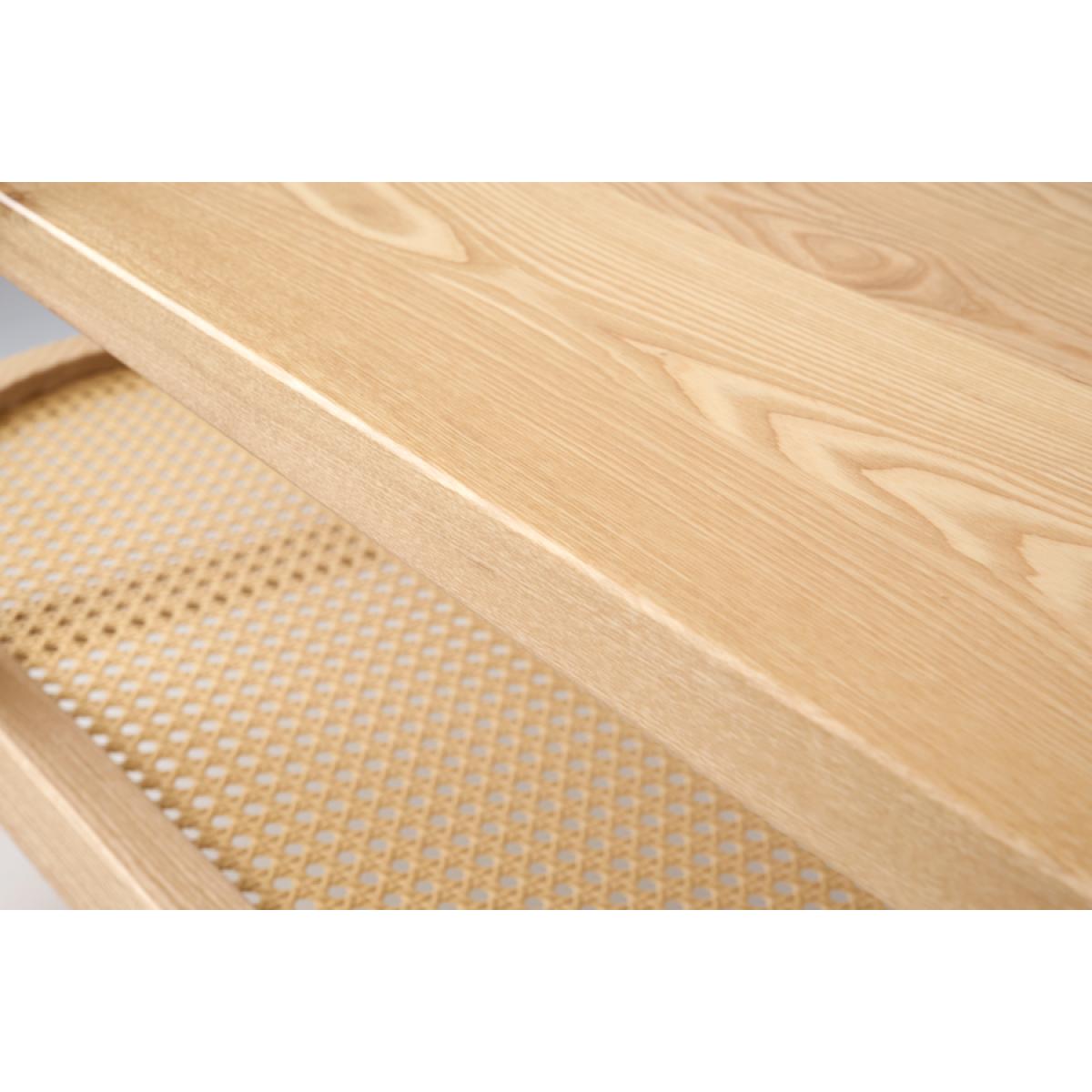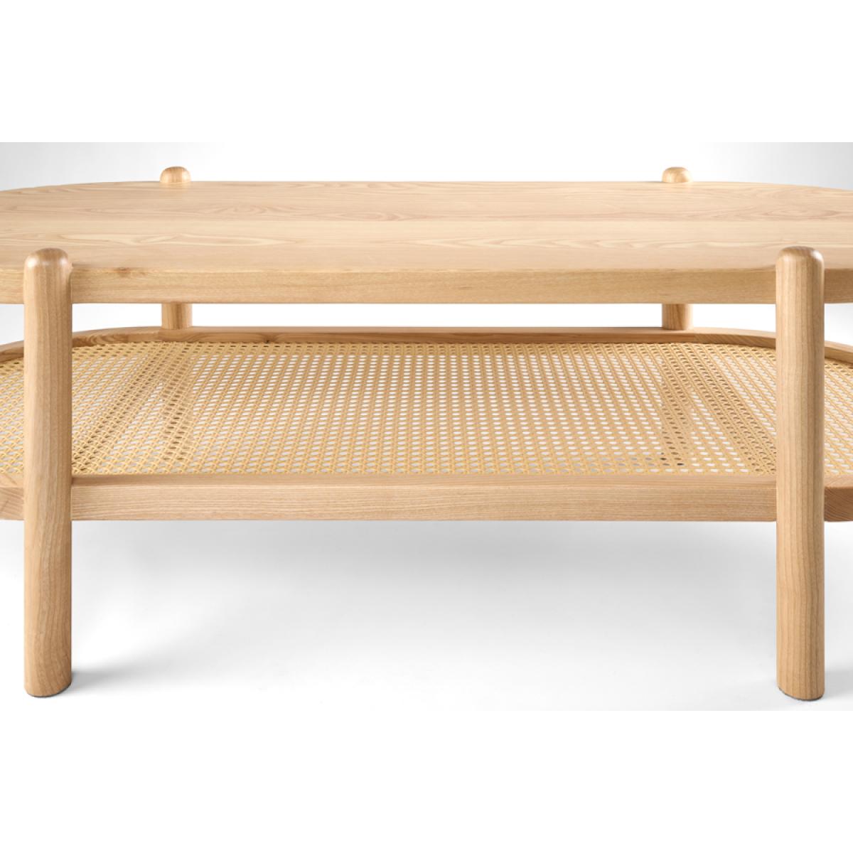 A cute, practical and versatile coffee table. Hand-crafted from solid ash wood with woven wicker shelf. Perfect for storing magazines, remotes, blankets etc. Supplied fully assembled.