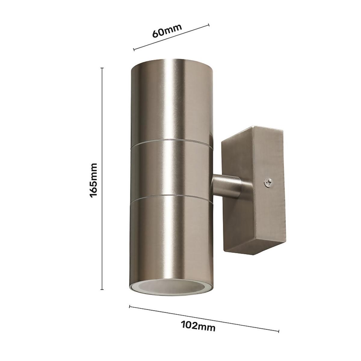 Illuminate your outdoor spaces with modern sophistication with the Mills Up & Down Wall Light. This stylish outdoor wall light is designed to cast a dual beam of light both upward and downward, providing efficient illumination. Finished in stainless steel, this wall light fitting will add some contemporary style to your home. Suitable for use inside or out, this outdoor light will allow you to create your desired lighting effect.