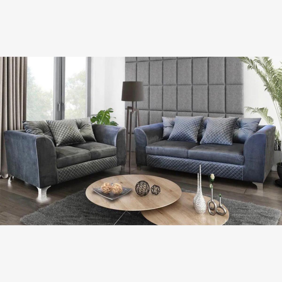 Milly Plush Velvet 3 and 2 Seater Sofa Set - Grey