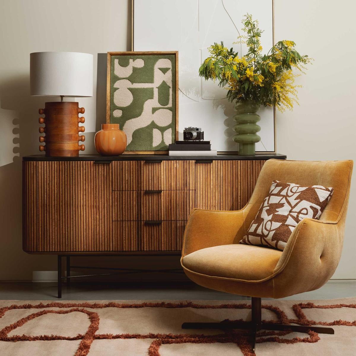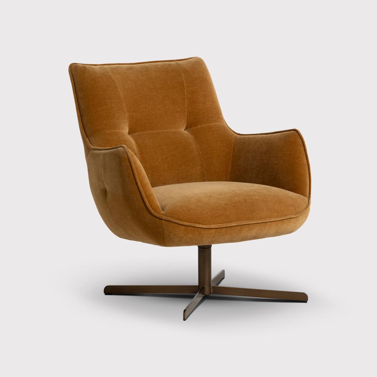 The Milne armchair in brown fabric offers a stylish yet versatile addition to a variety of interiors. I love its contemporary silhouette combined with the plush upholstery, making it perfect for creating a cosy corner or as a statement piece in a living room or office. Its neutral tone and comfortable shape work well in both modern and more traditional settings, especially if you’re aiming for a warm, inviting feel. Practical styling tips include pairing it with textured cushions or a small side table to enhance comfort and functionality, and it can be easily coordinated with other furniture in earthy or neutral shades for a cohesive look. The swivel base adds a modern touch and practicality, making it an adaptable choice for everyday use.