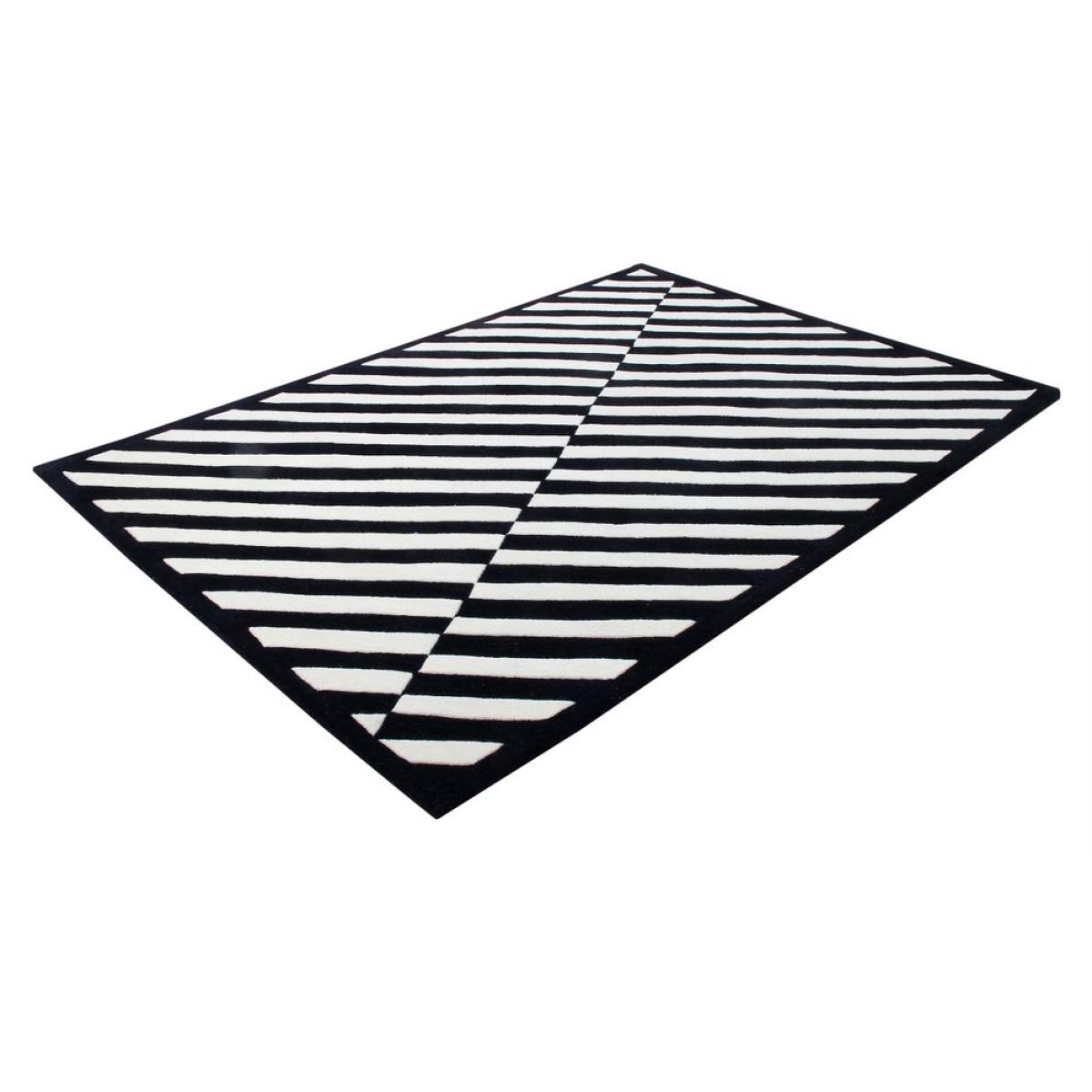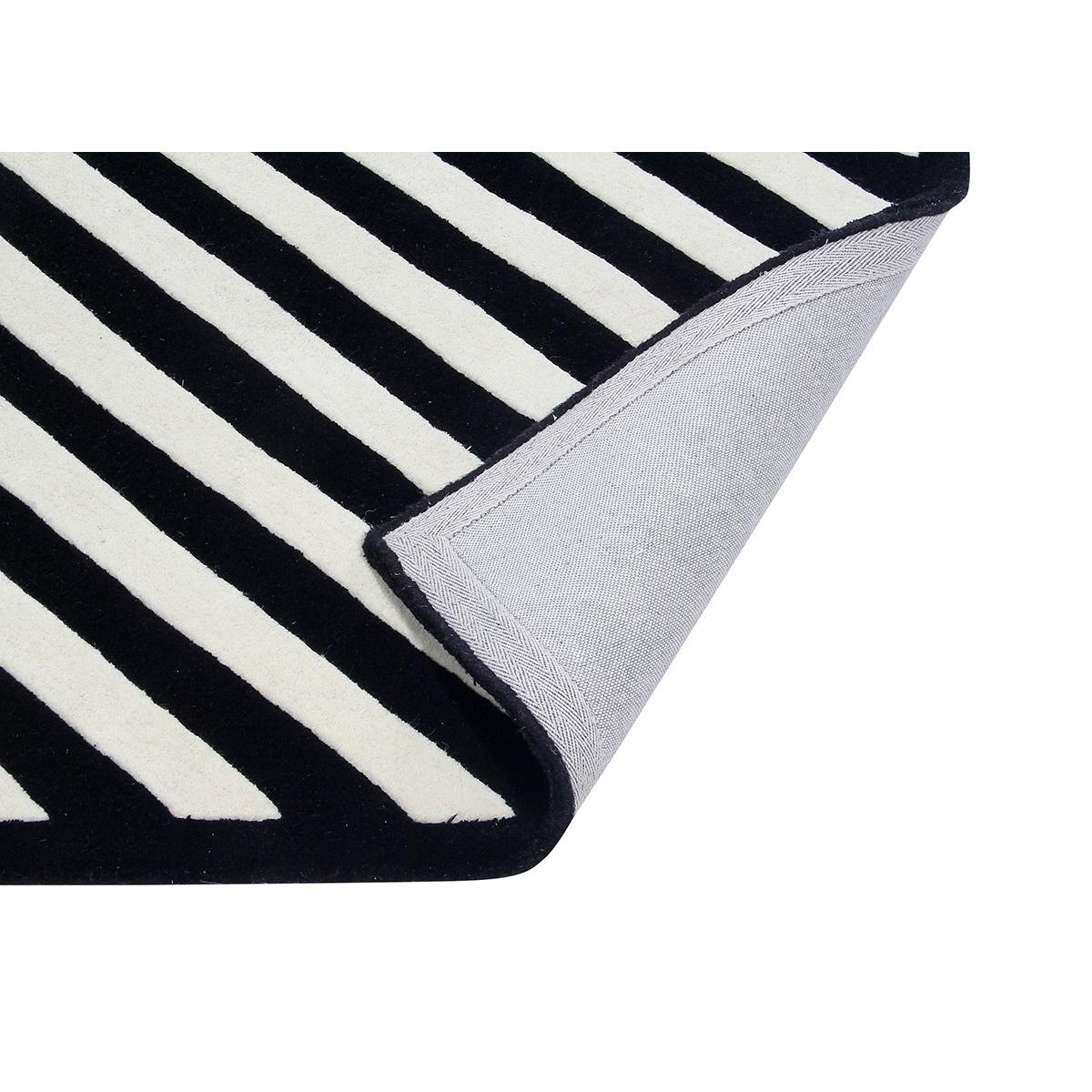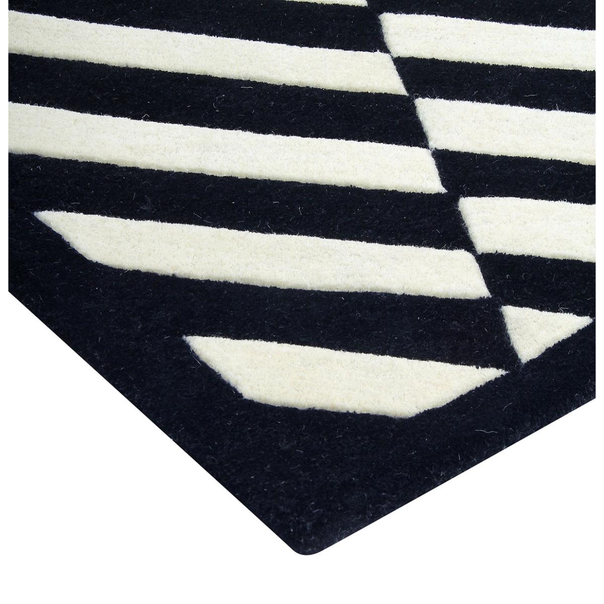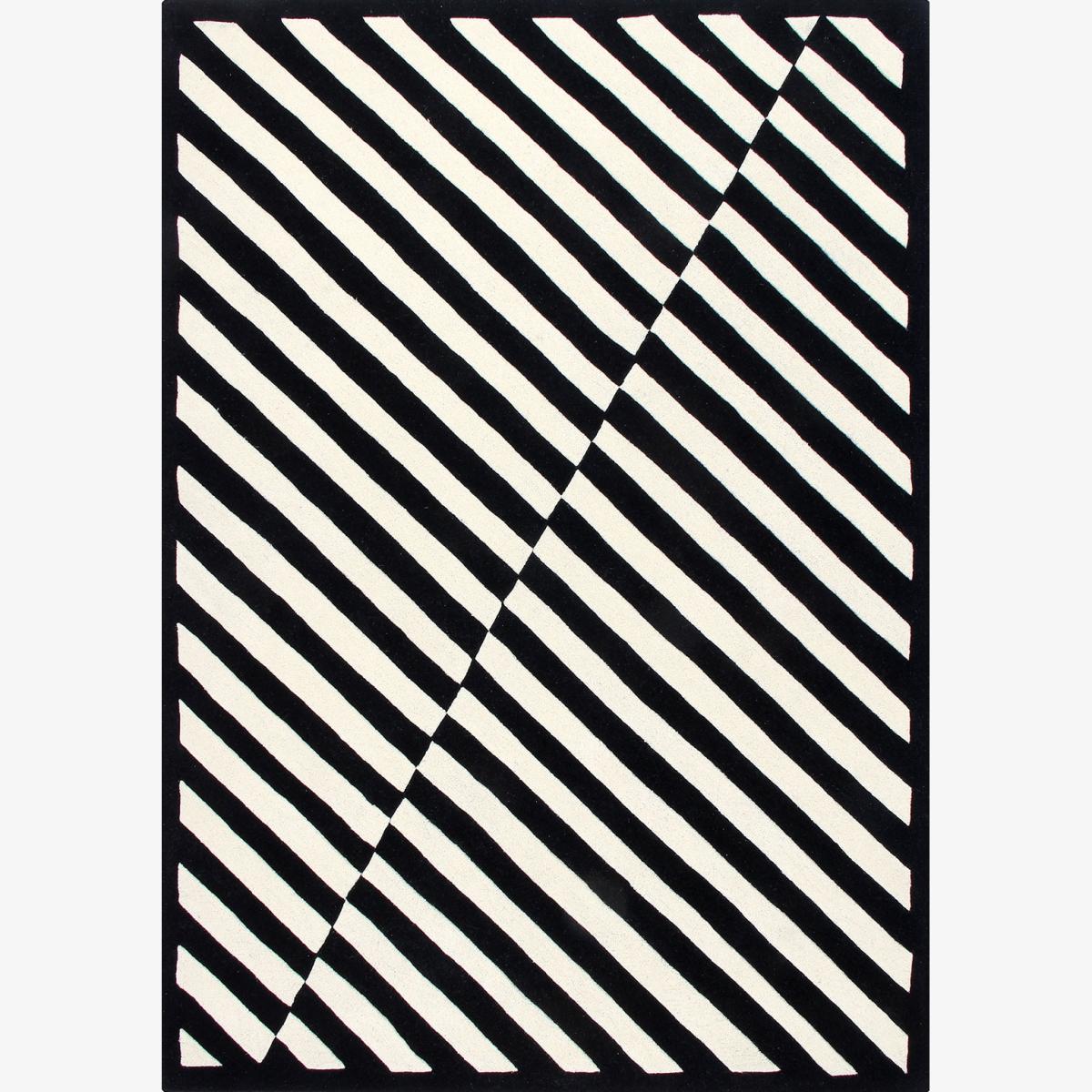 Bold geometry in monochrome black and off white colours with embossed detailing, now available in a larger size. Hand Tufted 100% Wool. Wool rugs shed fibres during vacuum cleaning and everyday use; this is not a fault but a natural characteristic. Please use only suction type vacuum cleaner as rotating brush vacuum may damage the rug. Spills should be cleaned immediately to help avoid staining- use a clean white absorbent cloth to dab the spillage, avoid scrubbing and chemical cleaners. For deep cleaning use a professional carpet cleaning company- do not dry clean or tumble dry. If loose threads appear carefully trim them with scissors.