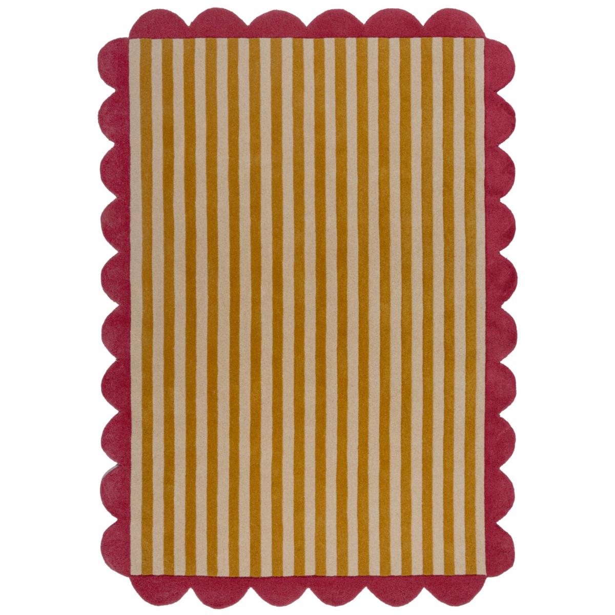 * Striped Design* Hand-Carved Scalloped Edges* Made from 100% Wool Pile* Bold Colourway Meet the Milo Scallop Wool Rug, where classic design meets contrasting colour. The 100% wool design is finished with a hand carved scalloped edge to brighten your home and add a layer warmth to uplift your mood. Style the Milo scallop rug with your most colourful pieces for a bold interior look or add an instant design statement to more neutral spaces. Rug pictured is 160cm x 230cm.