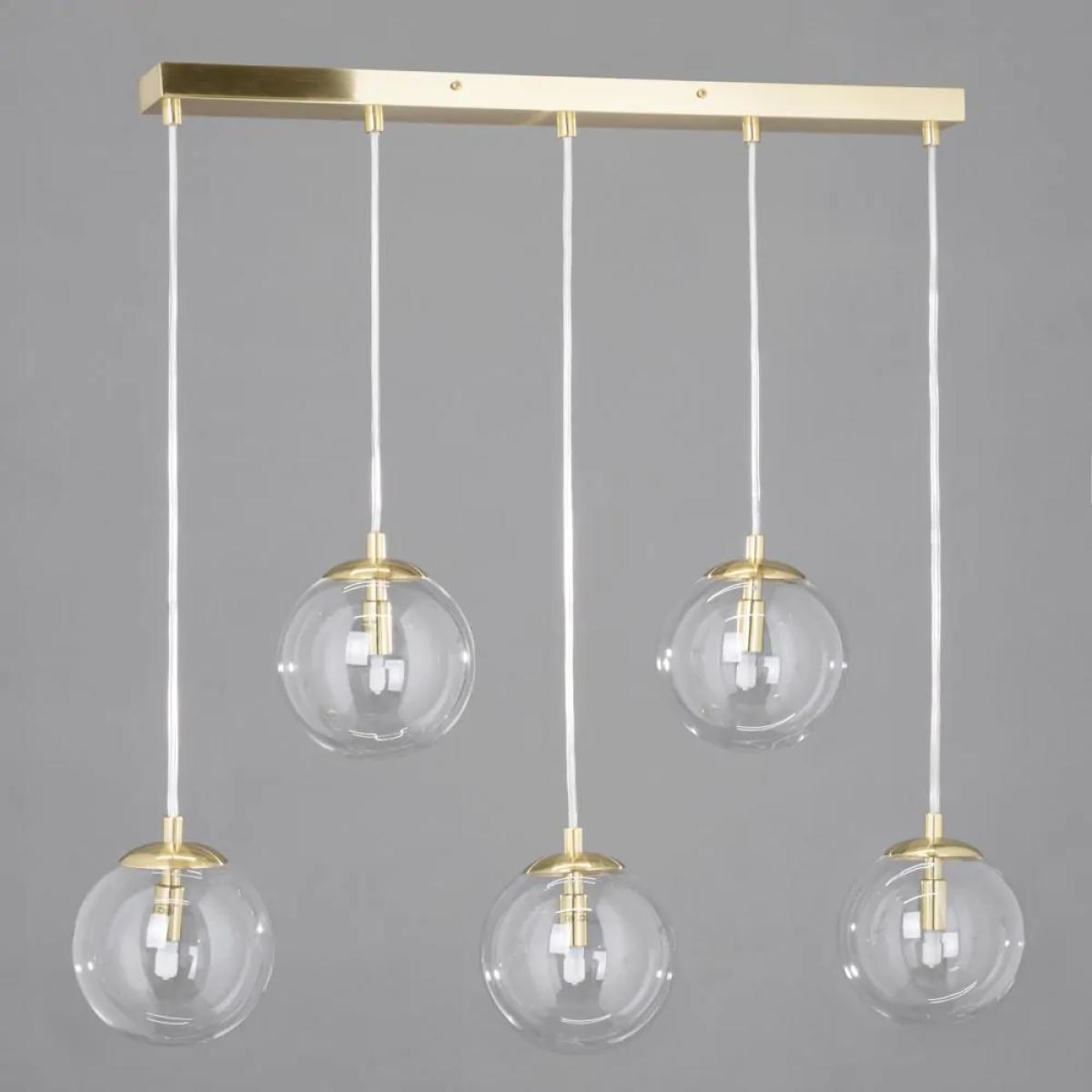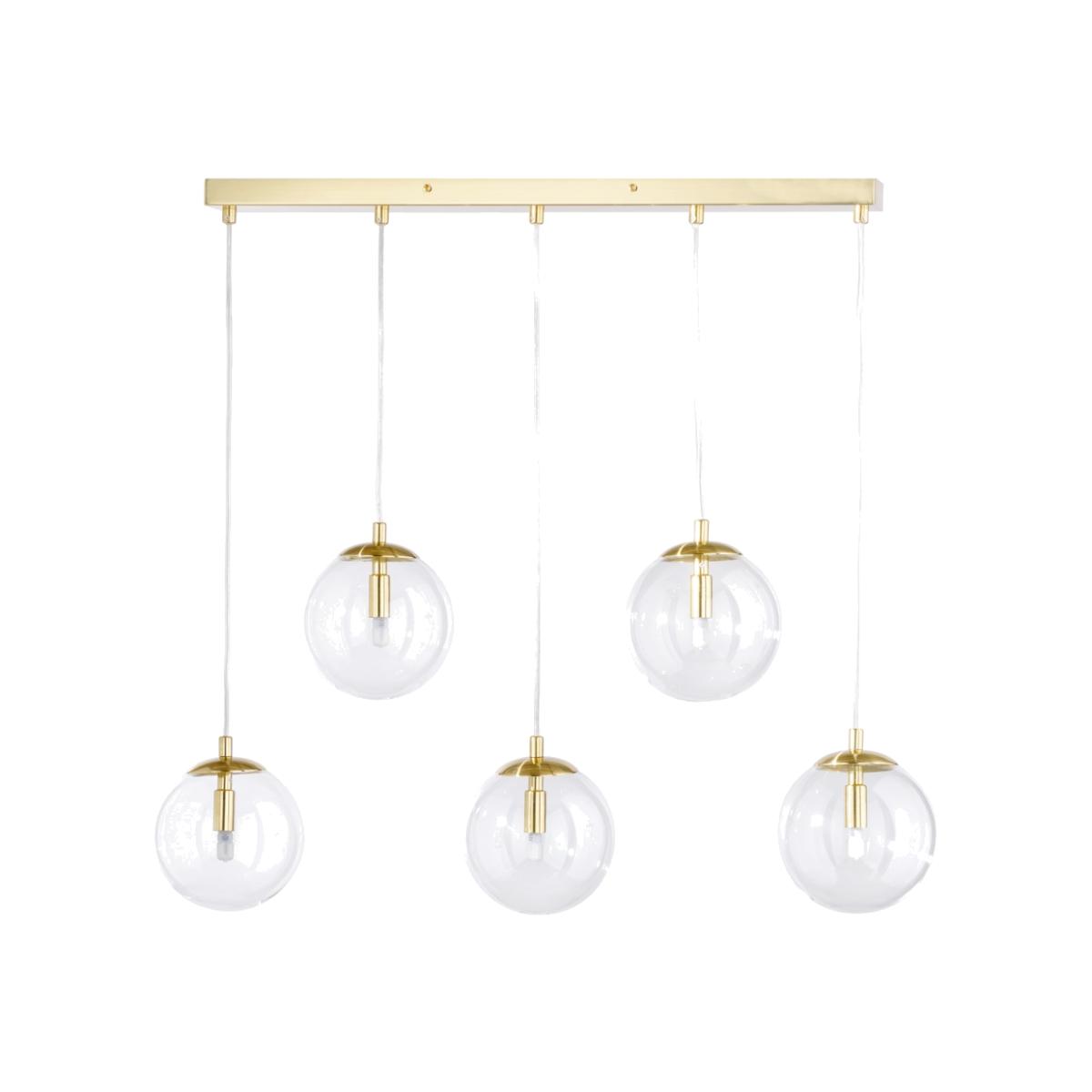 Bring a decorative edge to your interior with the Milton 5 Light Pendant Bar. With a gold finish that brings a feeling of decadence, this pendant bar features 5 individual hanging lights each complete with a spherical glass shade. Hang this ceiling pendant over a kitchen island, breakfast bar or dining room table for a luxurious look in your kitchen or diner.