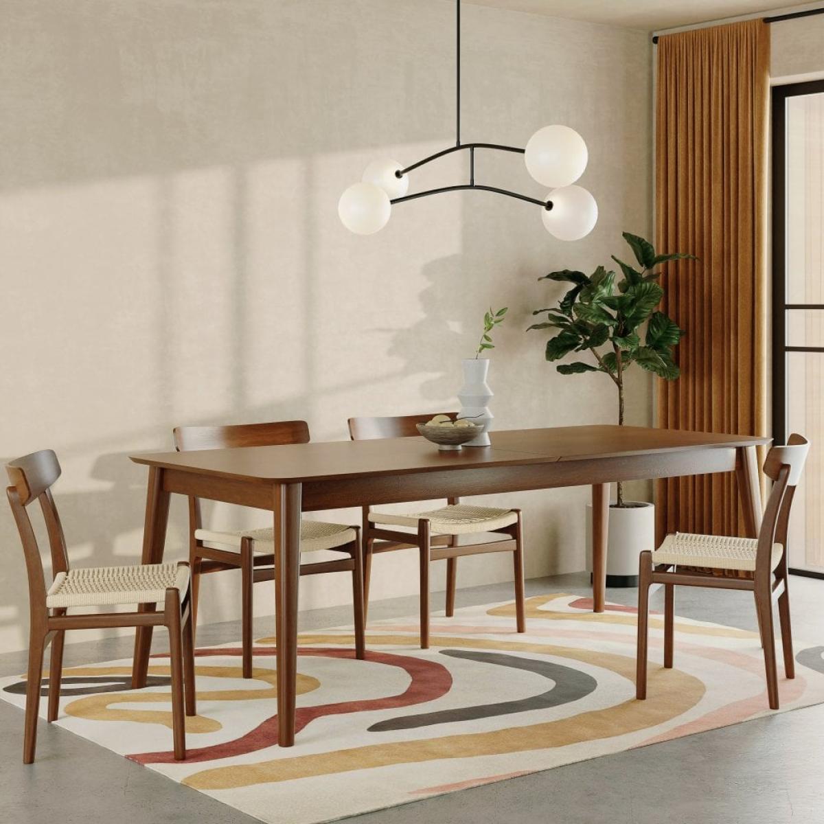 I love this extendable table for its sleek walnut finish and versatile size, making it ideal for both everyday family dinners and larger gatherings. Its understated scandi-inspired design works well in contemporary, mid-century, or even eclectic interiors, adding warmth and character without overpowering the space. When styling, I’d suggest pairing it with minimalist chairs or mixing textures with upholstered options for a cosy yet stylish look. Practical tips include keeping the surface clutter-free to enhance its clean lines, and adding a runner or placemats when entertaining to protect the wood and introduce colour or pattern. Overall, it’s a functional piece that seamlessly combines practicality with subtle design appeal.