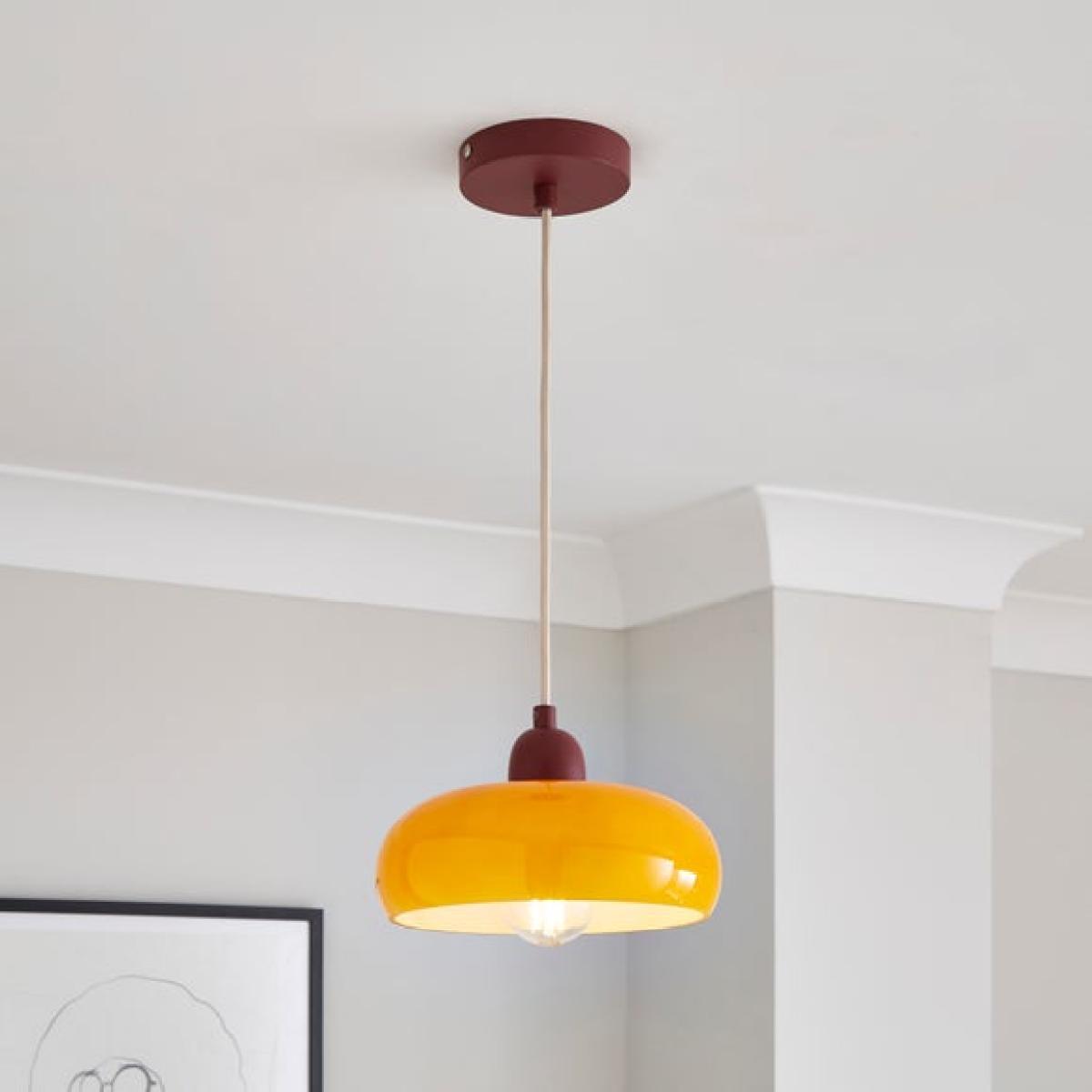 * Quirky, Modern Look & Design * Adjustable Height - Tailored Ambience * Made from Glass Make a statement with the Milton Adjustable Pendant Light, which features vibrant orange glass and a deep red top cap for a striking contrast. With an adjustable flex height, it’s the perfect way to add colour and character to your space.
