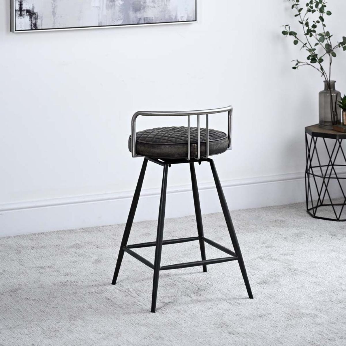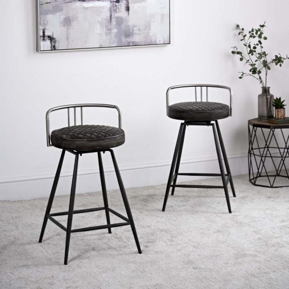 Your new Milton Bar Stool is a sophisticated addition to the home. A stunning combination with its dark faux leather rounded seat, and superb metal legs, that bring this piece together and give it a contemporary feel. With a seat height of 66.5cm they are ideal for positioning around your breakfast bar. The stool includes a twist function to allow you to turn in your chair with ease. Dimensions H76.5cm x W47.2cm x D40cm. Simple self assembly. Sold as a pair