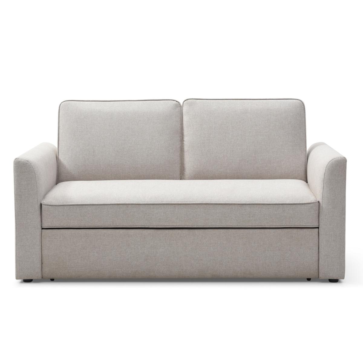 This classic designed Milton 2-seater sofa bed will make a versatile addition to your home. Upholstered in a neutral woven fabric, the sofa bed comes with a comfortable foam and fibre filled seat and the simple click clack function turns it into a comfy bed at night.