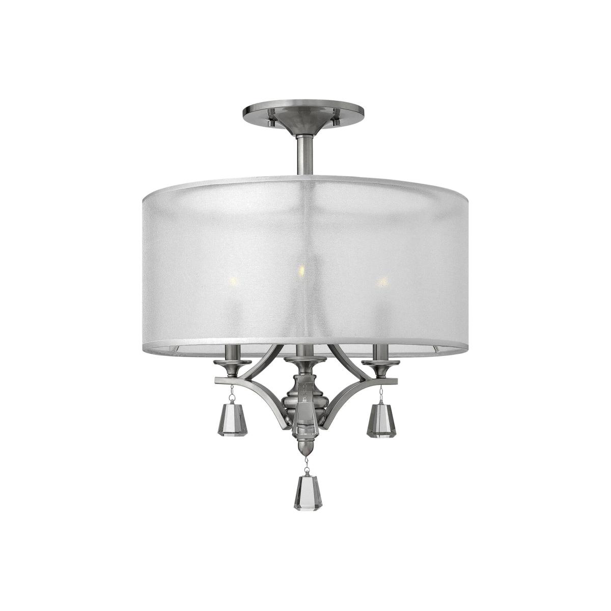 Mime 3 Light Semi Flush Ceiling Light Brushed Nickel, E14 - Brushed Nickel