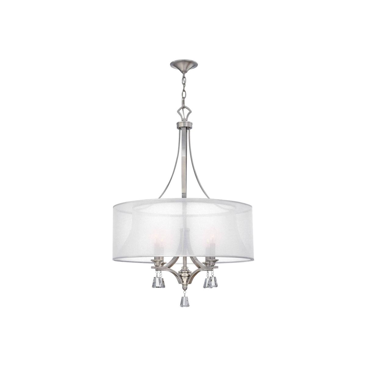 This elegant collection in a Brushed Nickel finish features a sheer translucent double hardback shade and tapered square crystal accents. The fittings have a unique air of elegance, which will influence the surroundings. A variety of matching fittings allow you to match up the lighting theme throughout the room. Whatever the size and shape of your room, you are sure to find the ideal fitting for you.