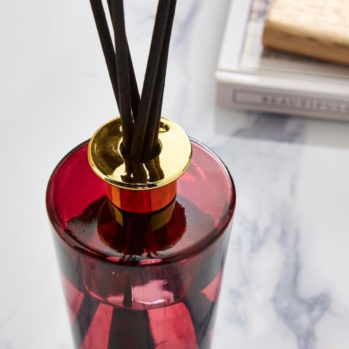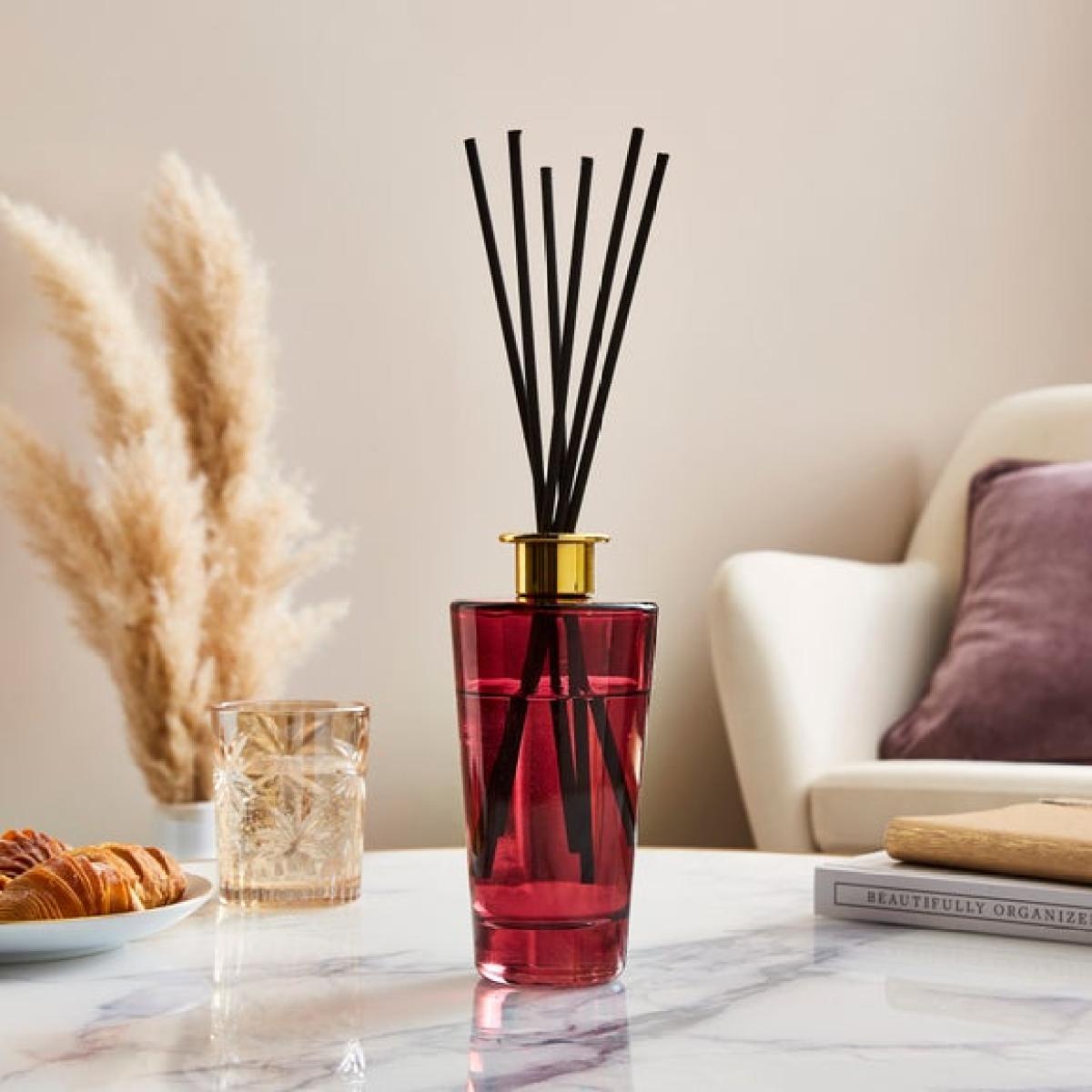 * Sweet and Spicy scent * Deep burgundy tinted glass bottle * Includes stylish black reeds This Mimosa and Cardamom Diffuser pairs a warm, inviting scent with a rich-toned finish. Notes of Mimosa and Cardamom offer a subtle blend that work well in any room. The glass bottle’s sleek silhouette makes it easy to place on shelves, side tables, or bathroom counters. Reeds are included, helping to disperse the fragrance gradually through your space. A simple way to bring a soft, fragrant touch to your day.