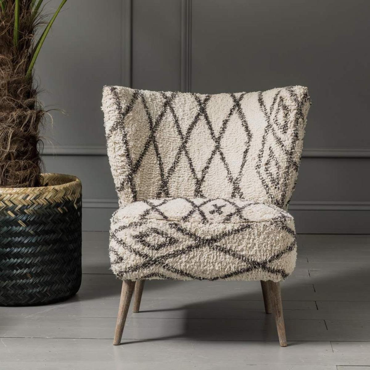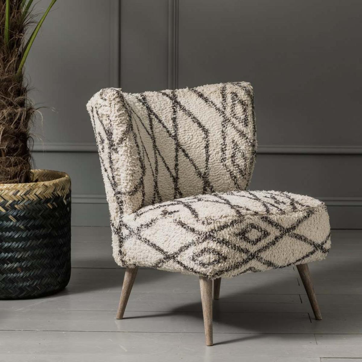 I love this little chair because of its versatile, contemporary design and subtle patterning that can lift both modern and eclectic interiors. It's a great choice as an accent piece in living rooms, bedrooms, or even a cosy corner in a hallway. The neutral tones and textured fabric make it easy to style with a variety of colour schemes and accessories. Practical tips include pairing it with a bold cushion or contrasting throw for added comfort and visual interest, or placing it near a statement side table to create a practical and stylish reading nook. Its compact size makes it ideal for smaller spaces or as a way to introduce additional seating without overwhelming the room.