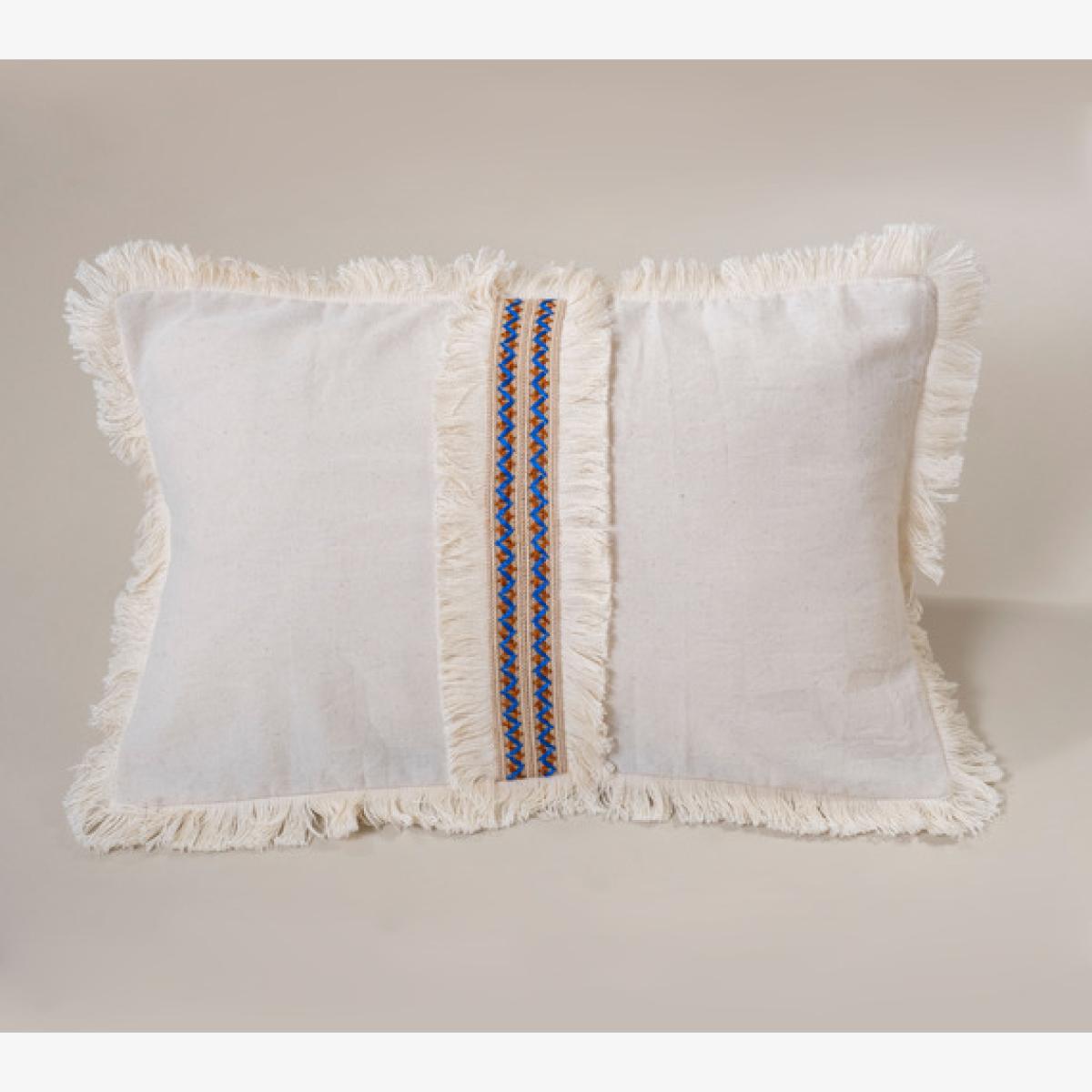 Mina Single Special Design Raw Linen Embroided, Tasseled Cushion Covers - White - Raw
