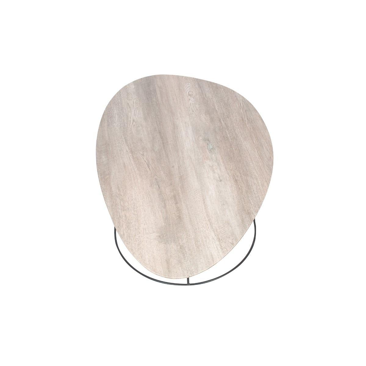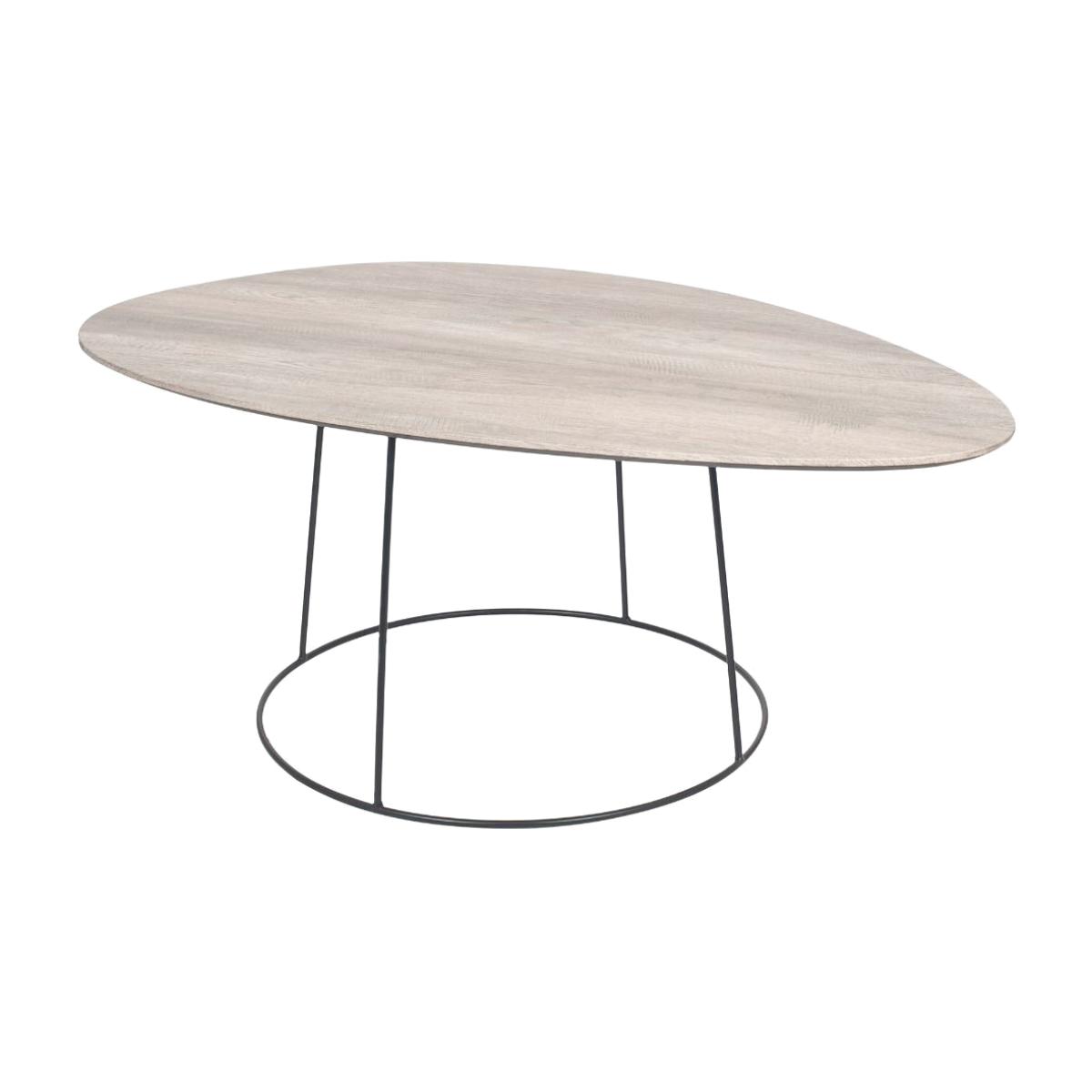 Modern shaped coffee table. Contemporary style coffee table boasting an oval shaped top and matt black metal legs. Perfect for use in lounges and beside sofas.