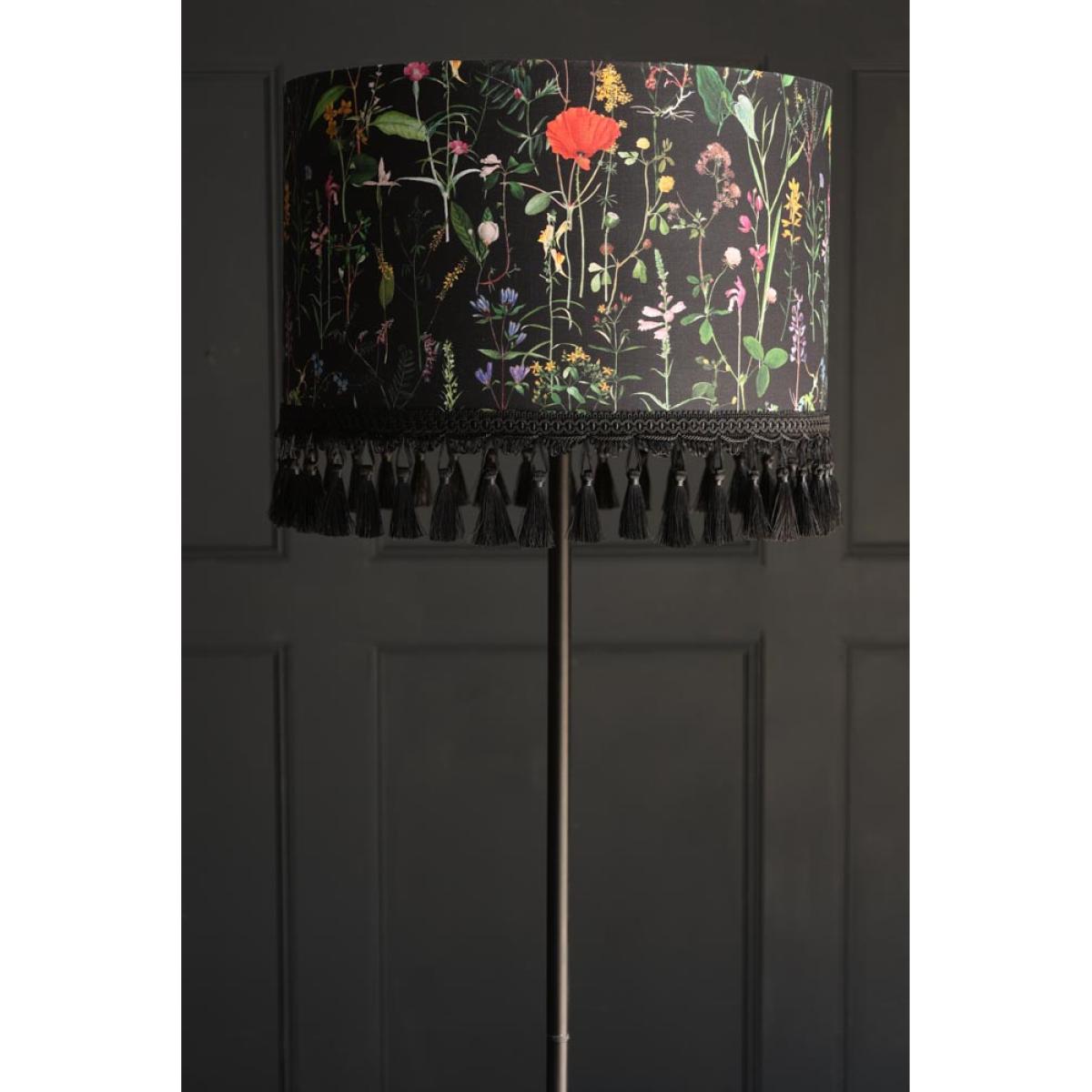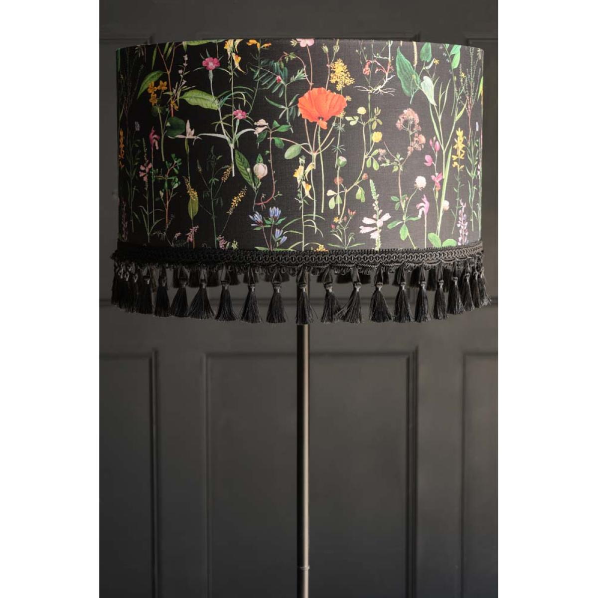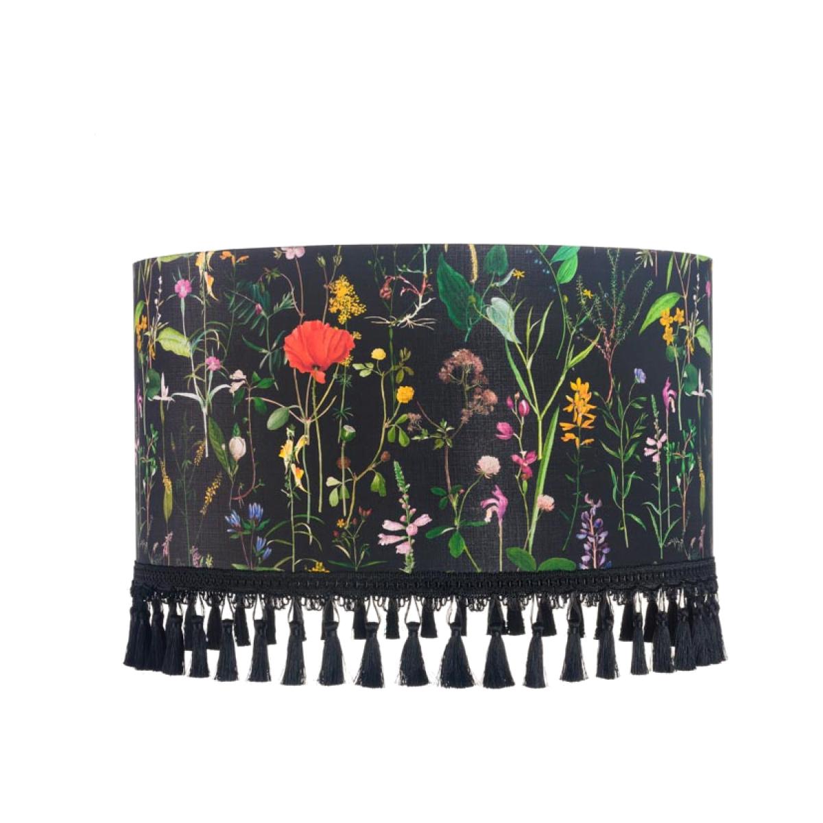 About The Mind The Gap Aquafleur Lamp ShadeAvailable in small, medium and large sizes, the Mind The Gap Aquafleur Lamp Shade will inject a burst of floral delight into your existing scheme. Showcasing a mesmerising assortment of colourful wildflowers including bluebells, cornflowers and poppy flowers, this drum lamp shade features an elegant design printed on a black linen background. Enhancing the luxuriousness of the piece, this linen lamp shade showcases an intricately braided trim, with black tassels and a glamorous gold lining that’ll emit a radiant glow throughout your scheme. Why We Think You’ll Love The Vintage Floral Lamp ShadeWe love a charming lamp shade, it allows you to mix and match your styles depending on your mood and display them on whatever quirky lamp bases you already own in your home. Combining a lively colour palette mixed with delicate shapes, this quirky lamp shade exudes an effortless elegance that’s utterly beautiful to the eye. And what’s more, the chic black trim ties the design together offering a graceful border to this exquisite living room lamp shade. How To Style The Patterned Lamp ShadePair this decorative lamp shade with a beautiful black turned wood lamp base to accentuate the vibrant colours of the wildflower print. Alternatively, why not up-cycle an existing lamp base by styling it with this quirky lamp shade. It’s a wonderful way to make use of what you already own while refreshing your decor with unforgettable style. This unique lamp shade would look utterly stunning styled in a cosy living room scheme or on a side table next to a gorgeous armchair should you want to sit back and relax with a book.