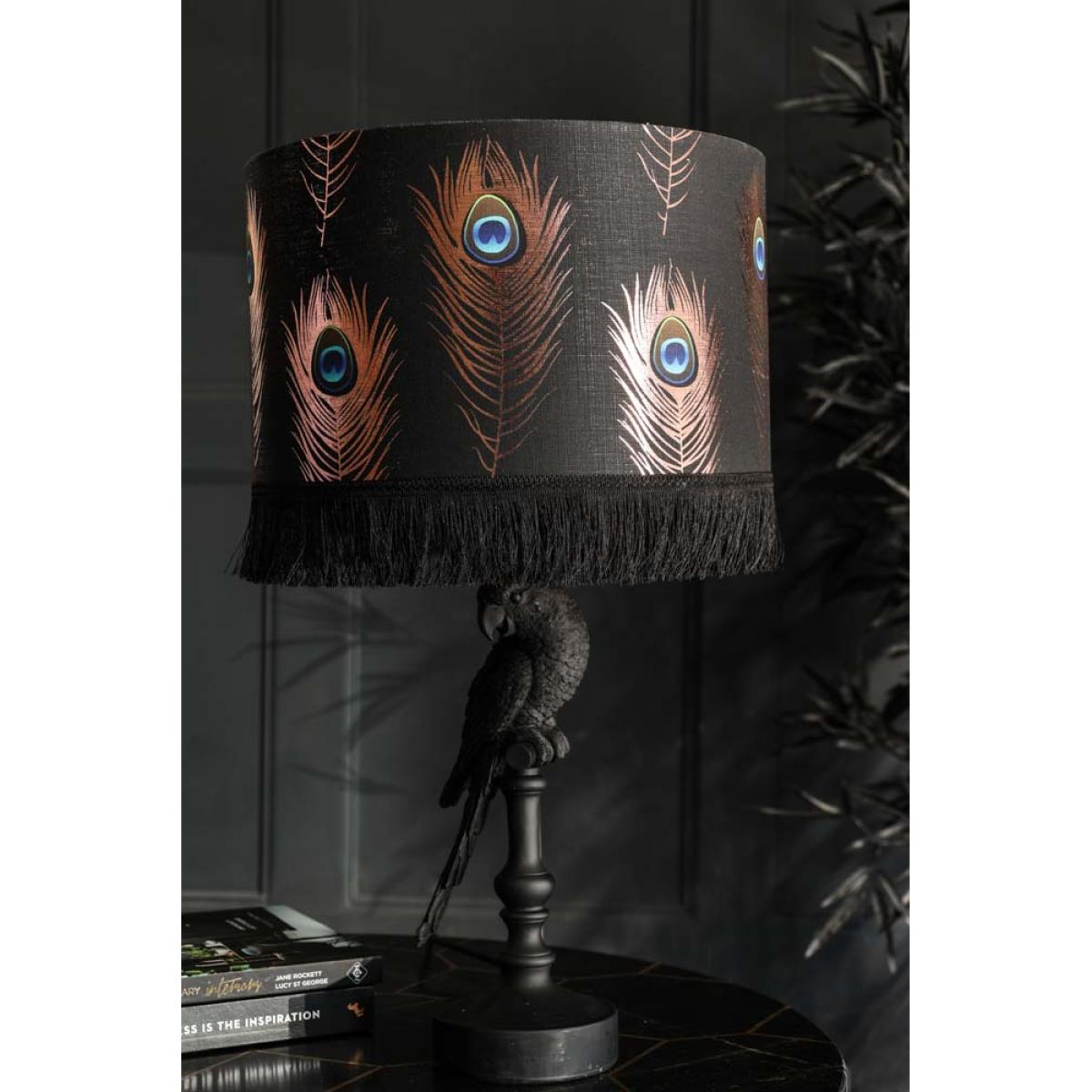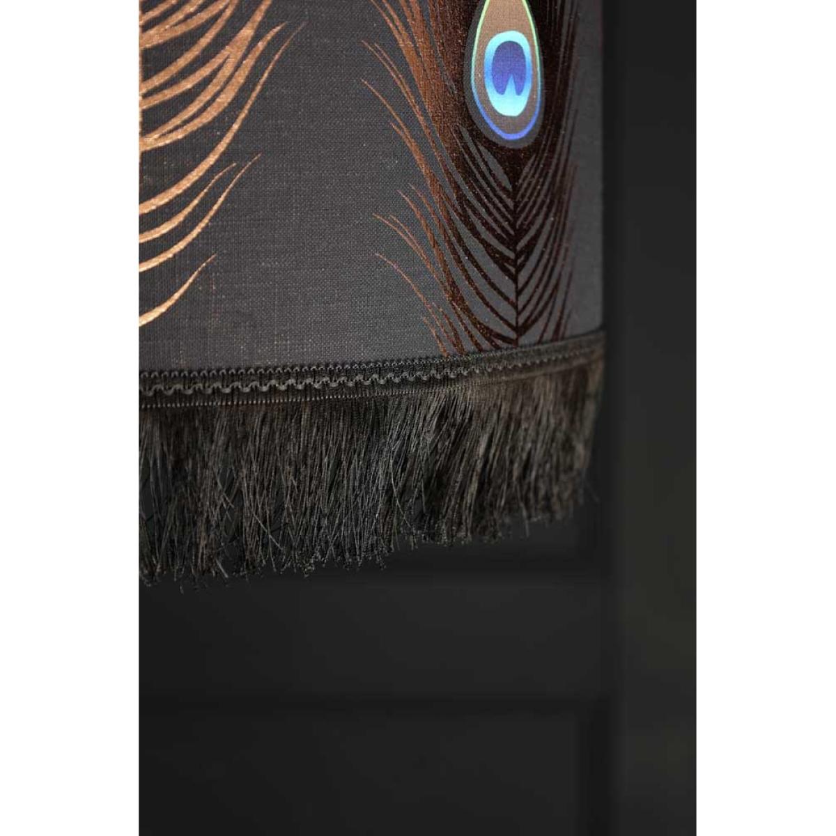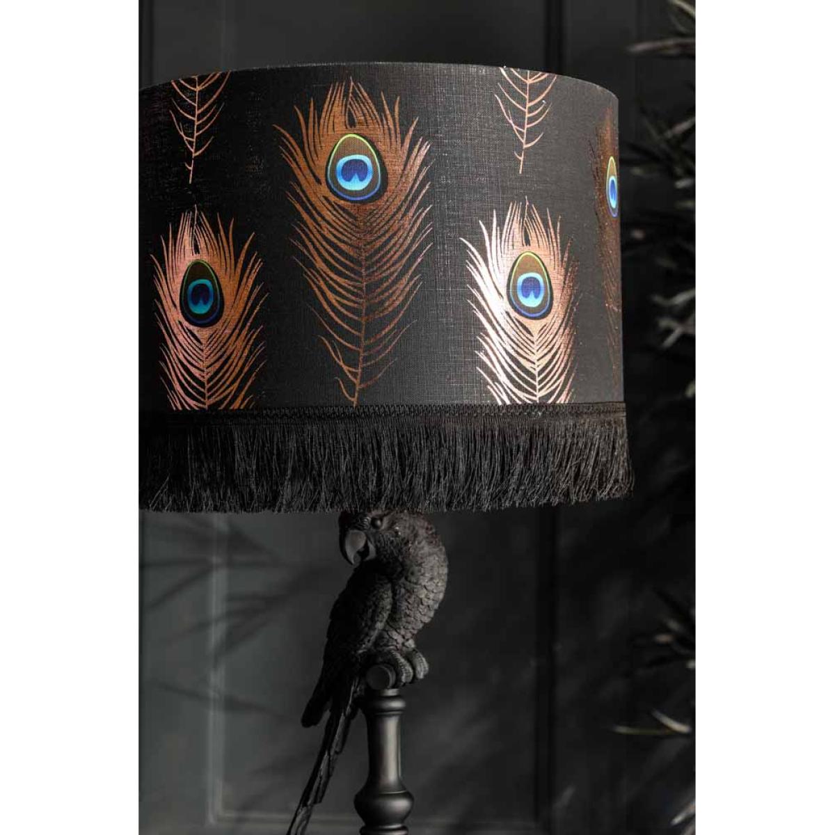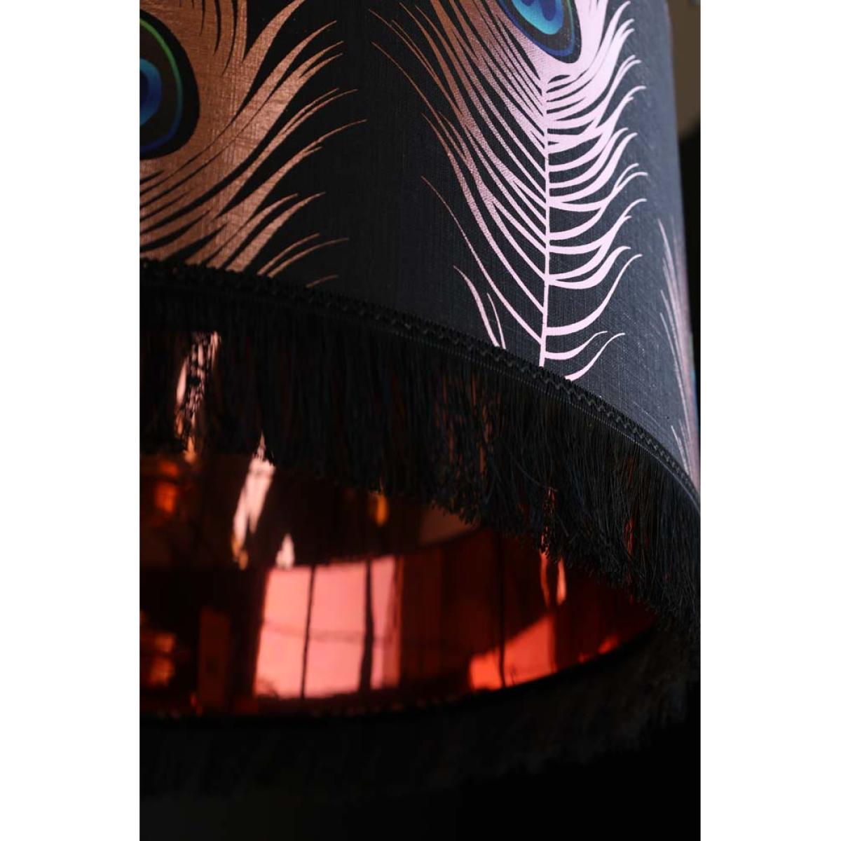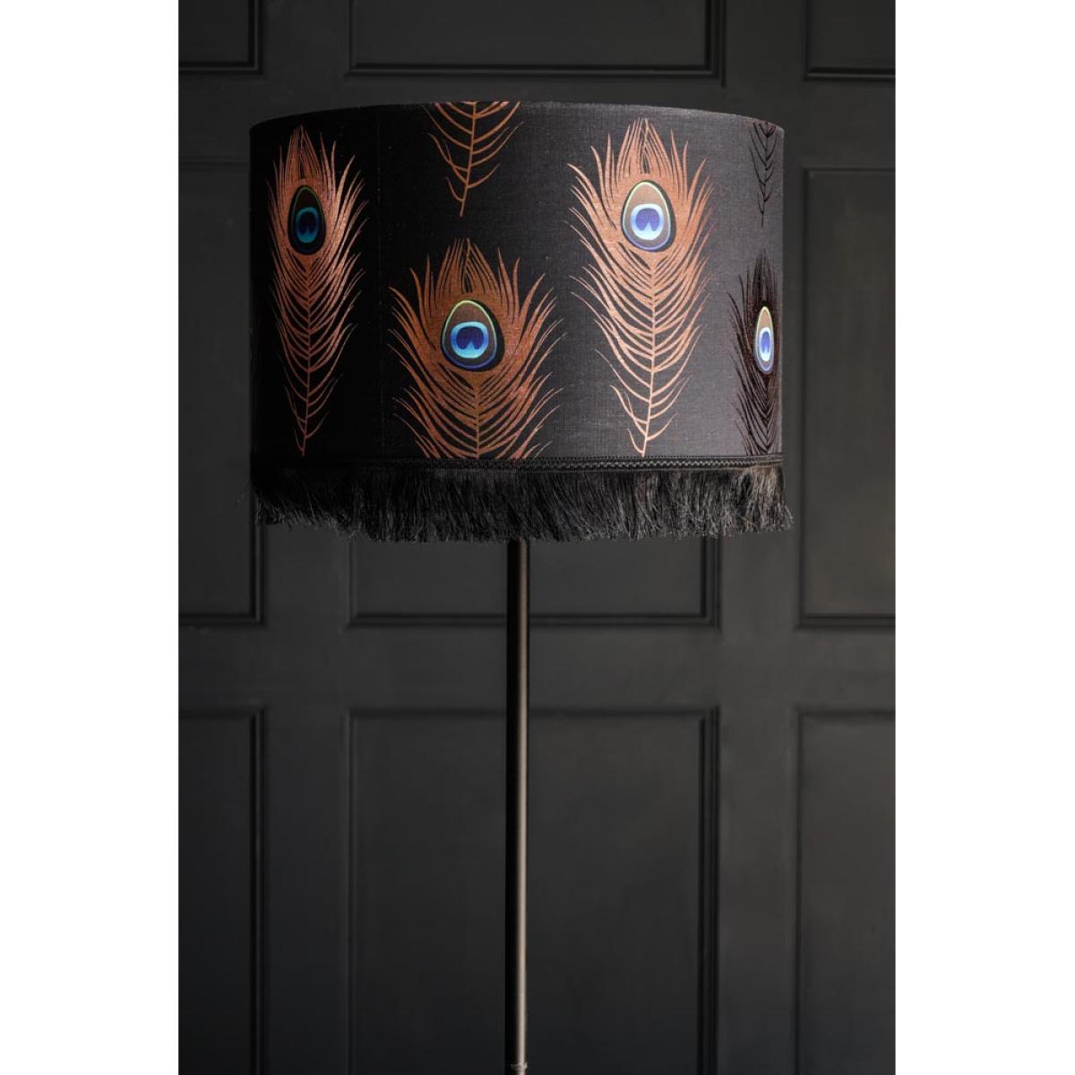 About The Mind The Gap Peacock Feather Lamp ShadeAvailable in Small, Medium and Large sizes, the Mind The Gap Peacock Feather Lamp Shade is a delightfully elegant lamp shade. Showcasing a dazzling colour palette combining peacock blues and copper shades on a black linen background, this drum lamp shade features an utterly graceful print of beautiful plumes. This gorgeous linen lamp shade is finished with a long black fringe and offers a copper-lined interior which will emit the most radiant glow into the surrounding decor. Why We Think You’ll Love The Peacock Lamp ShadeAt Rockett St George, we love finding a delightfully unique lamp shade such as this one. It enables you to mix and match your style and display them on whatever quirky lamp bases you already own in your home. Combining a vivid colour palette with a delicate feather print, this unique lamp shade will become an opulent accent piece in a dark and daring interior scheme, so what’s not to love?!How To Style The Linen Drum Lamp ShadeThis decorative lamp shade will make a stunning statement styled on a side table, console table or sideboard. The serene design combined with the shaggy black trim exudes an appearance of tranquillity that would bode well in a living room or bedroom scheme. Save a pretty penny and upcycle and existing lamp base in your home by styling it with this unique lamp shade. It’s a creative way to make use of what you already own while refreshing your decor with unforgettable style.