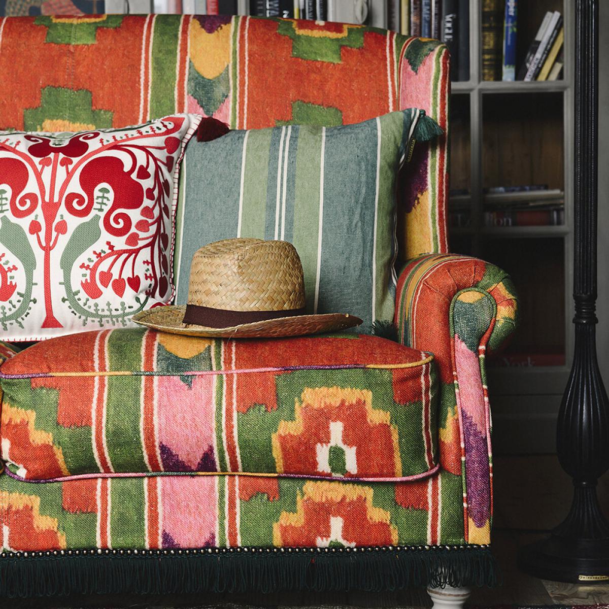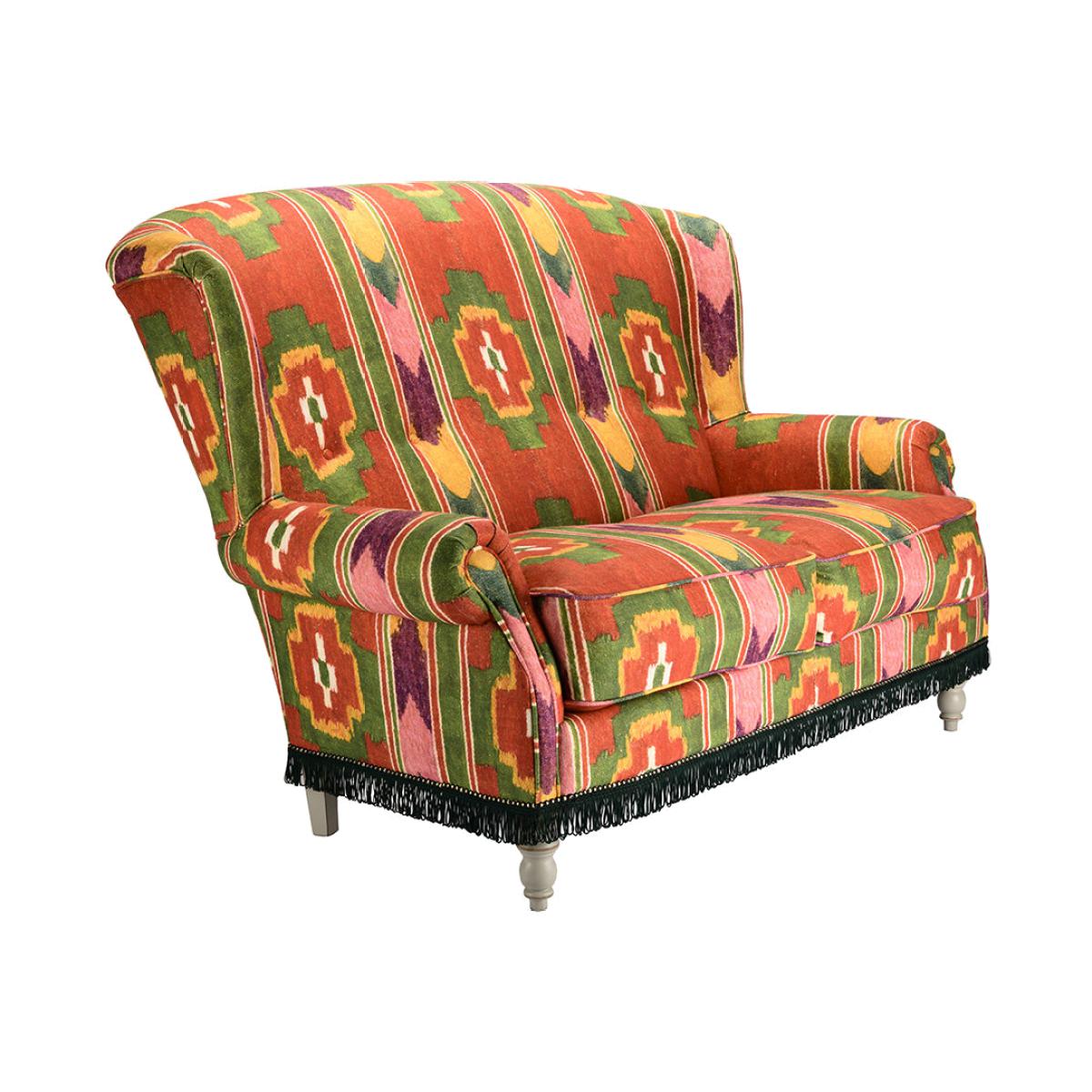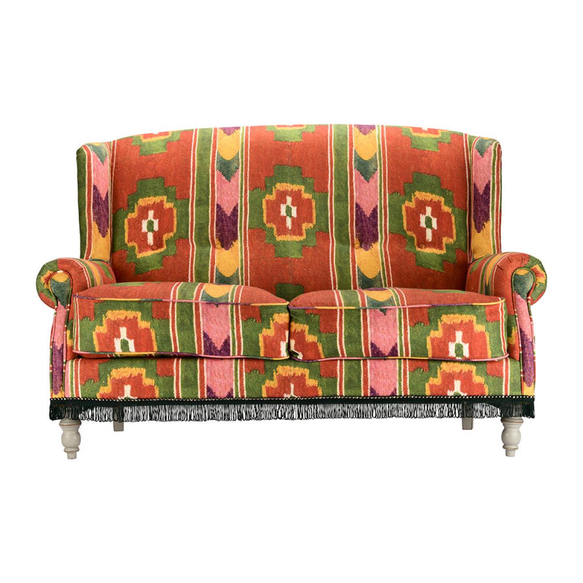 Give your home a vibrant touch with this Abigail sofa from MINDTHEGAP. A statement two-seater sofa with an upright back, rollover arms, and tapered legs. With a bold design featuring shapes in a range of colours, this contemporary piece is a must-have. Please note, due to the printing process, colours will fade when exposed to direct sunlight. For curtains, blinds, and draperies, we strongly recommend using a blackout lining.