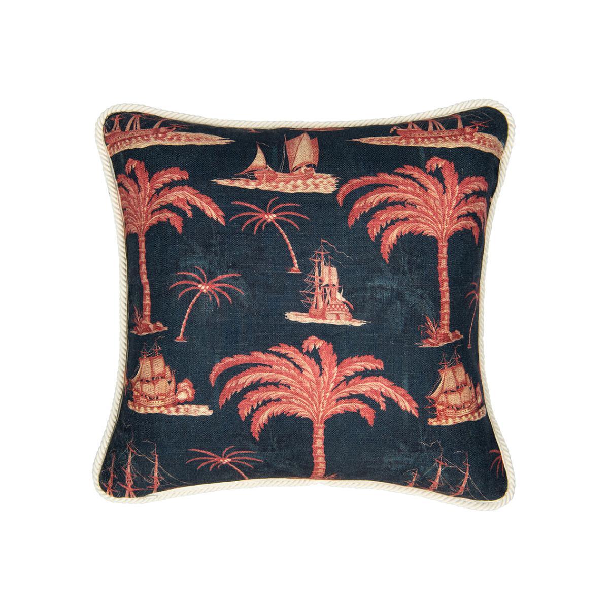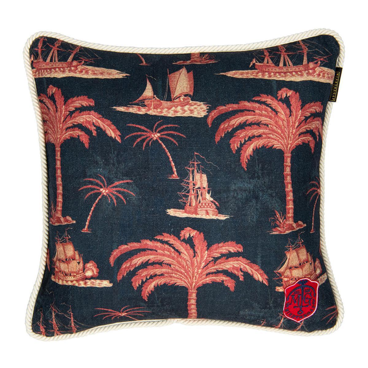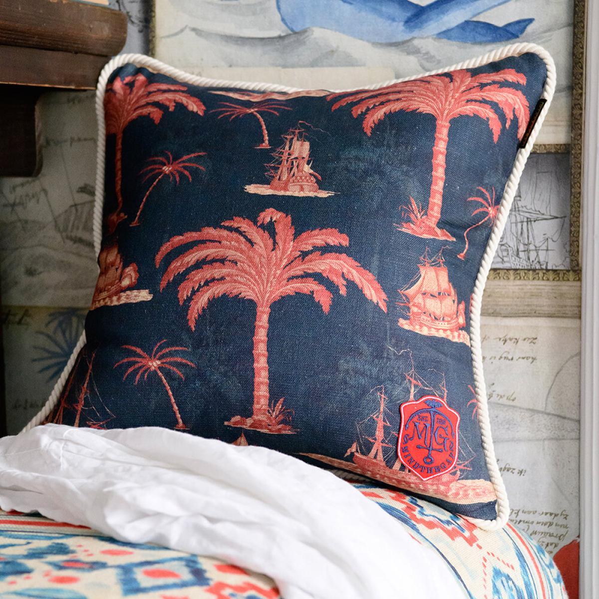 Update your pillowscape with this Aegean cushion from MINDTHEGAP. Made from linen with a plush duck feather filling, it features a vintage island-life design in white, blue, and red tones and is finished with an embroidered maritime crest.