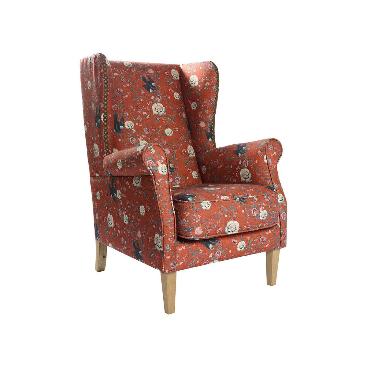 Blackbirds swoop amongst blue and pink flowers on this striking armchair from MINDTHEGAP. With a bold red background, this unique pattern is sure to make a style statement wherever it’s placed. Crafted from a beechwood frame and upholstered in 100% linen, this design has a vintage charm that will remain timeless in any corner of your home.