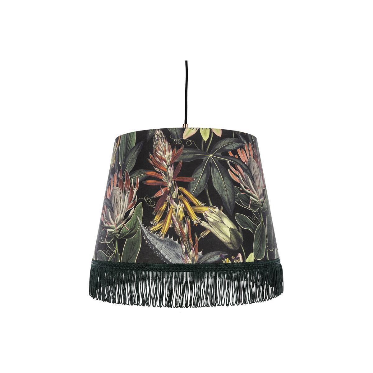 Add some tropical flower power into your home with this cone ceiling light from MINDTHEGAP. Printed with a tropical flower design, it’s been finished with a golden lining and looped fringes.
