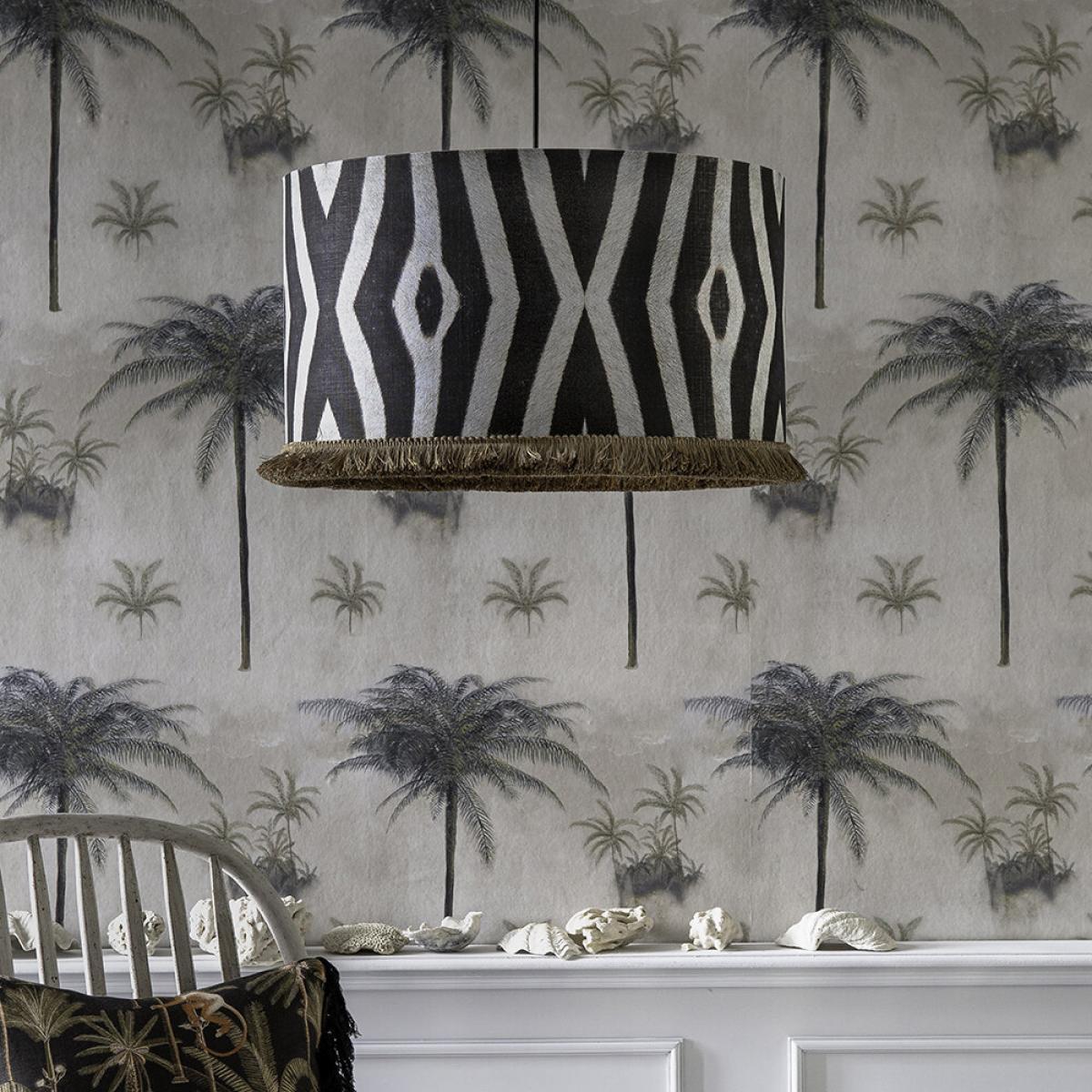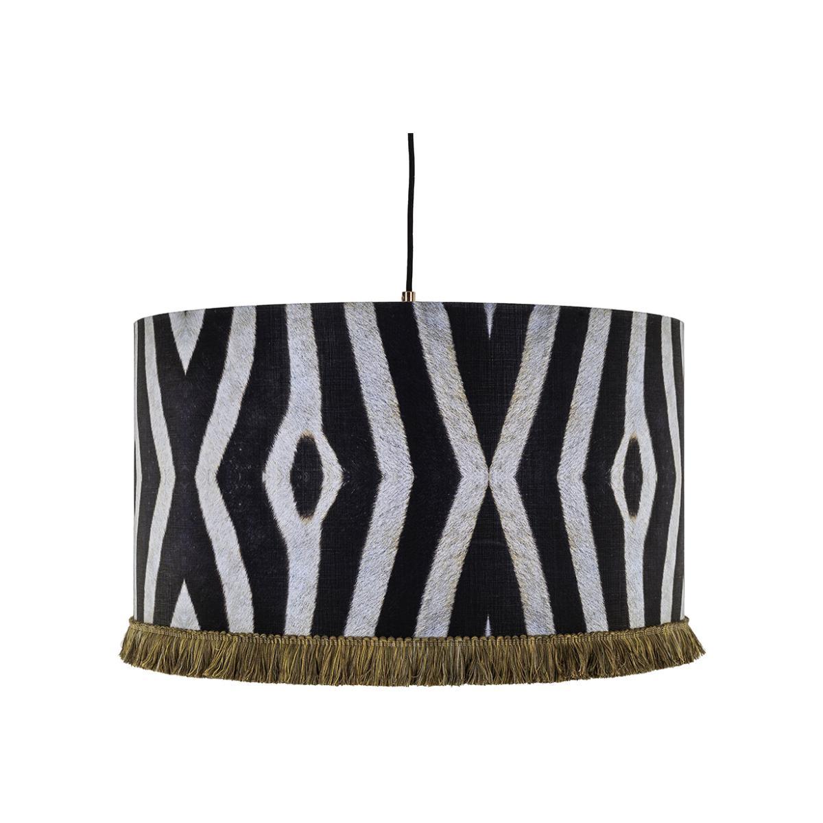 Update your home with this drum ceiling light from MINDTHEGAP. Printed with a zebra print inspired design, it’s finished with a golden lining and golden looped fringes.