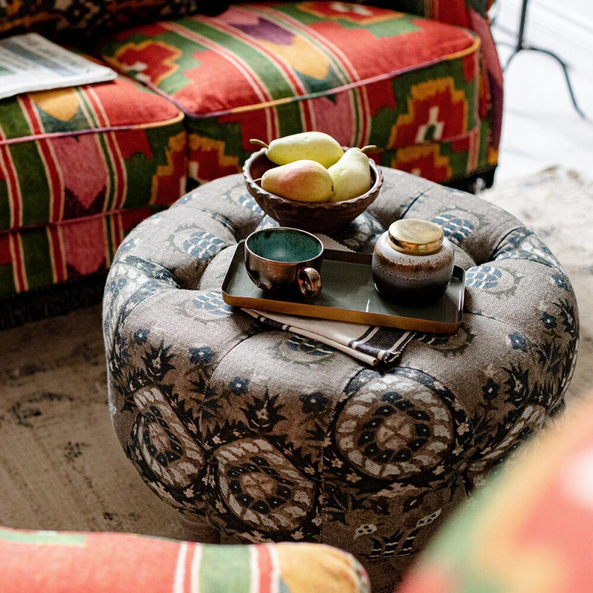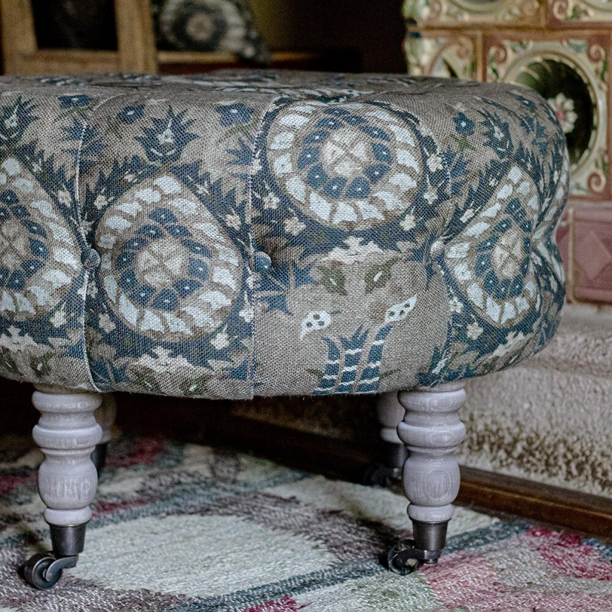 I love this little piece - it’s a versatile addition that works particularly well in eclectic or boho-inspired interiors, thanks to its rich pattern and textured fabric. The Fez tufted stool brings a touch of character and can serve as both a practical footrest and an extra seat when needed. Its neutral dapple grey hue makes it easy to incorporate into various colour schemes, while the patterned upholstery adds visual interest without overpowering the space. For styling tips, try pairing it with a mix of soft textiles and layered rugs for a cosy look, or use it as a statement piece in a corner with a tall plant or decorative tray on top. Its casters add mobility, making it a flexible style and functional option in living rooms or bedrooms.