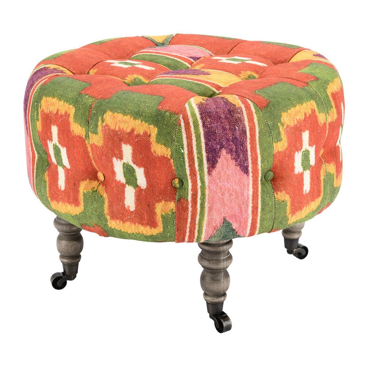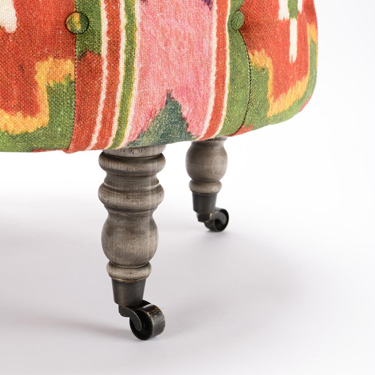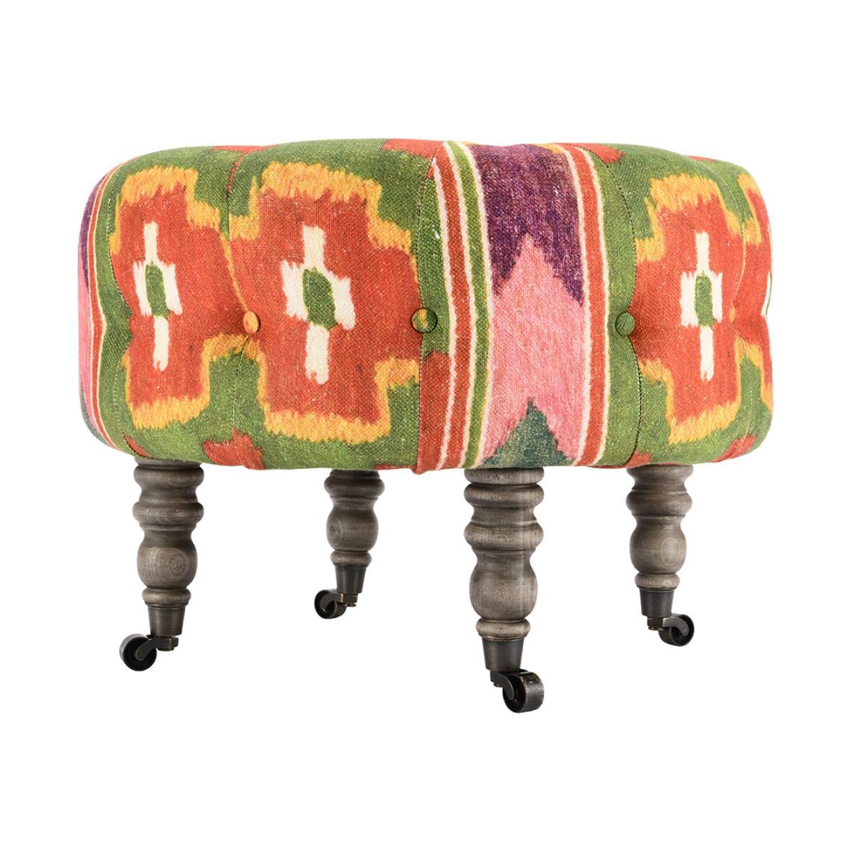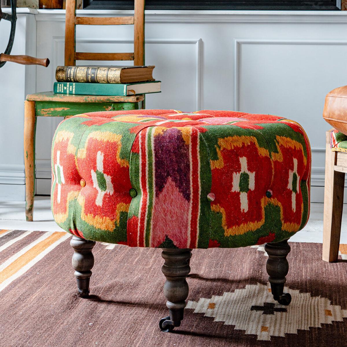 I love the Fez stool’s bold, colourful pattern, which instantly brings a touch of global eclecticism to any space. It works particularly well in interiors that embrace a boho, vintage, or layered aesthetic, adding both visual interest and extra seating or footrest utility. For styling tips, consider using it alongside neutral or earthy tones to let its vibrant design stand out or pair it with textured textiles and layered patterns for a rich, inviting feel. Its tapered, wooden legs give it a slightly traditional edge, making it versatile enough to work in both contemporary and more traditional settings. Overall, it’s a piece that adds personality and functionality without overpowering the rest of the décor.