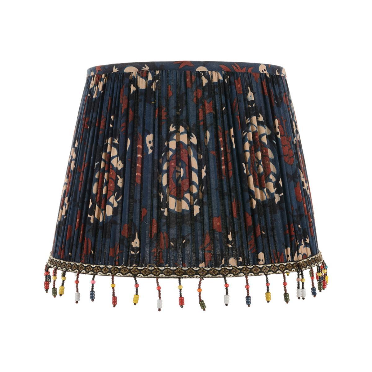 Update an old fixture with this Flourish lamp shade from MINDTHEGAP. With blue and red tones and a block print floral pattern, this pleated lamp shade has been finished with beaded tassels. One-of-a-kind, it’s an eccentric addition to your living space.